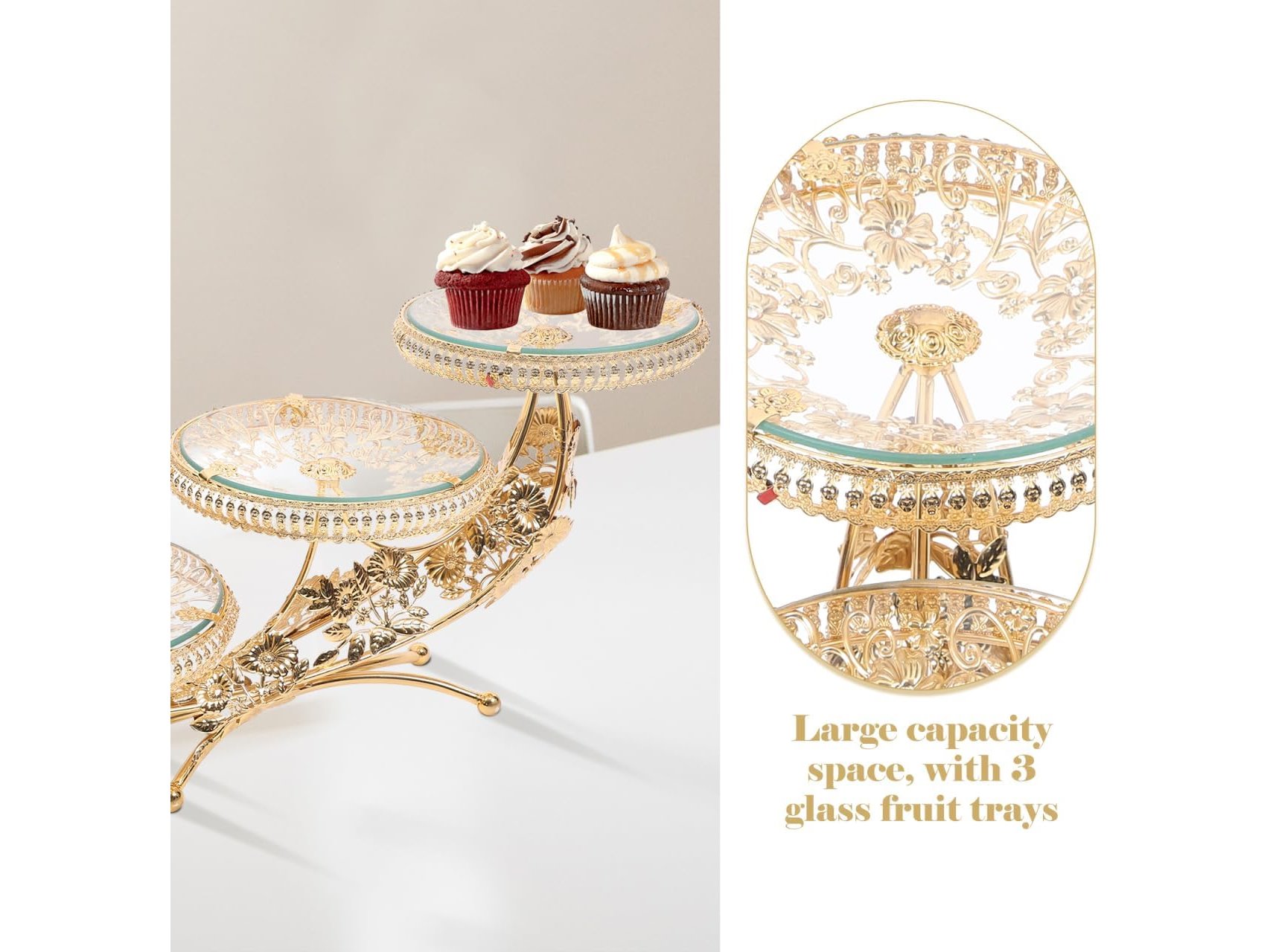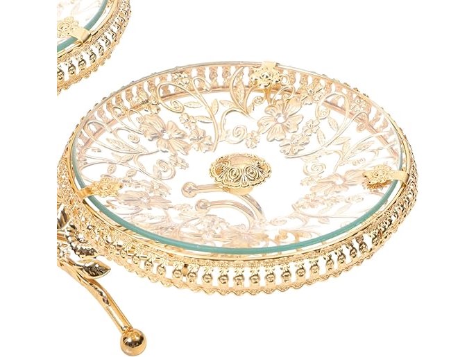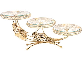 Ongebruikt, ok, licht beschadigde verpakking, Hemoton Kristallen Glas Fruit Tray 3 Tiered Serving Stand Voedsel Display Stand Cupcake Stand Serveren Cake Stand Voedsel Server Display Plaat Rack (Gouden), B098B21NB1