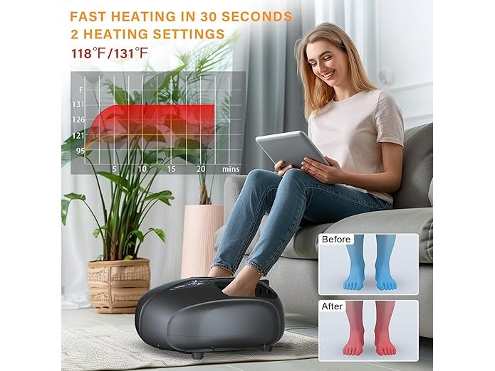 Ongebruikt, getest en werkend, ok, TODO Voetmassageapparaat met lichte warmte, diep kneden, 5 intensiteiten en 4 voetmassagemodi, elektrische shiatsu-massageapparaat voor ontspanning en verlichting, voeten tot maat 46, B0DB1ZNPWW