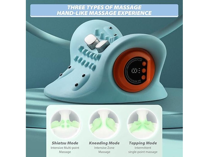 Ongebruikt, getest en werkend, ok, EMS Elektrisch nekmassageapparaat, met warmte, draadloos massageapparaat, schouder-, nek- en nekmassageapparaat, 3 modi, 6 instelbare frequenties, acupressuur voor de nek, B0F2M2KGLN