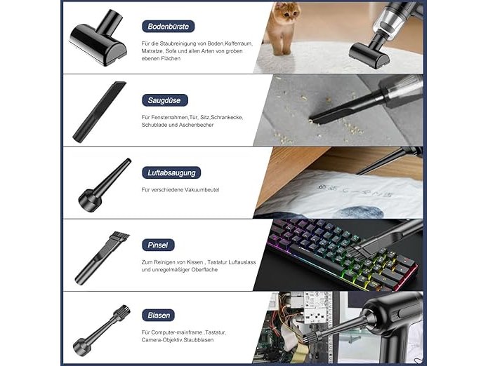 Minieme gebruikssporen, getest en werkend, volledig, ok, MOMOTOU 5 in 1 Mini Handstofzuiger 11000PA Borstelloze Motor Multifunctionele Oplaadbare Snoerloze Draagbare Auto Stofzuiger voor Auto, Huis, Huisdierhaar (Zwart) B0CHNVYRVN