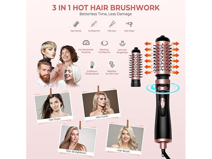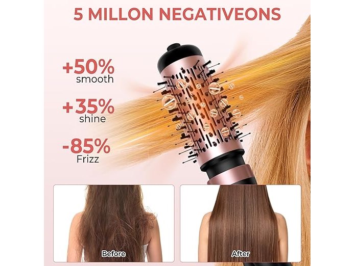 Ongebruikt, getest en werkend, volledig, ok, Okwrap föhnborstel met 2 opzetstukken voor drogen, gladmaken, vormen en volume, ronde föhnborstel, roterende drumkam-technologie voor anti-kroeseffect, B0D4VJ7SBM