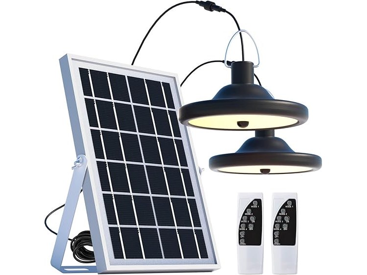 Ongebruikt, getest en werkend, volledig, ok, licht beschadigde verpakking, JACKYLED Solarlampen met afstandsbediening, IP65 waterdicht, dubbele kop, hanglamp op zonne-energie met 16,4 ft kabel, hanglamp op zonne-energie voor tuin, camping, huis, terras, balkon (warm wit), B08TBD95G6