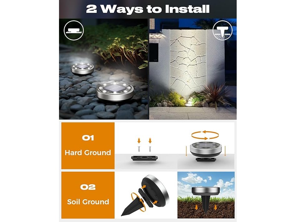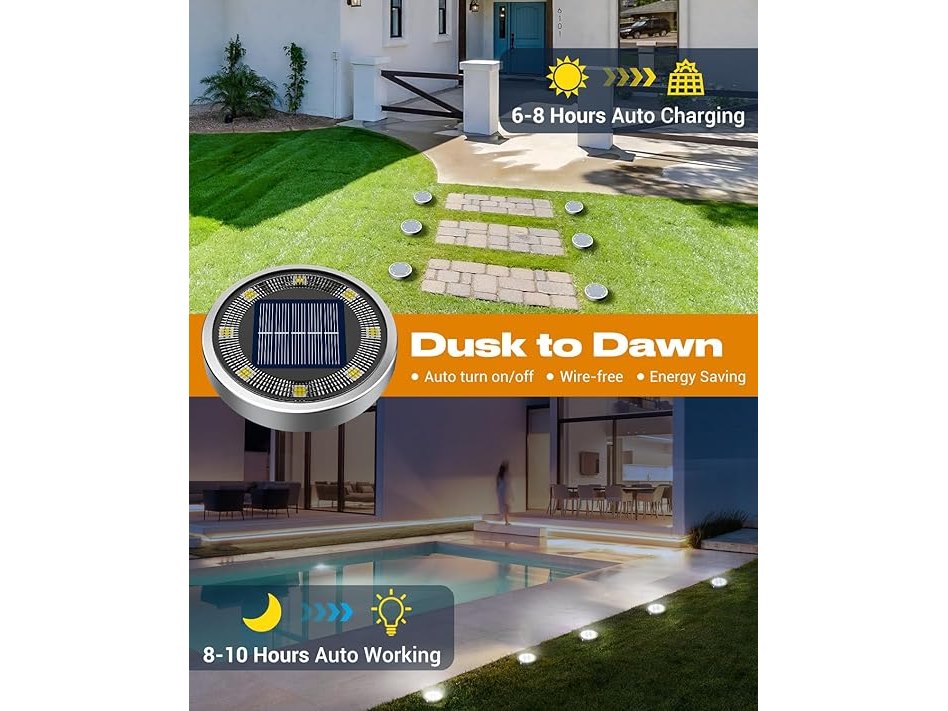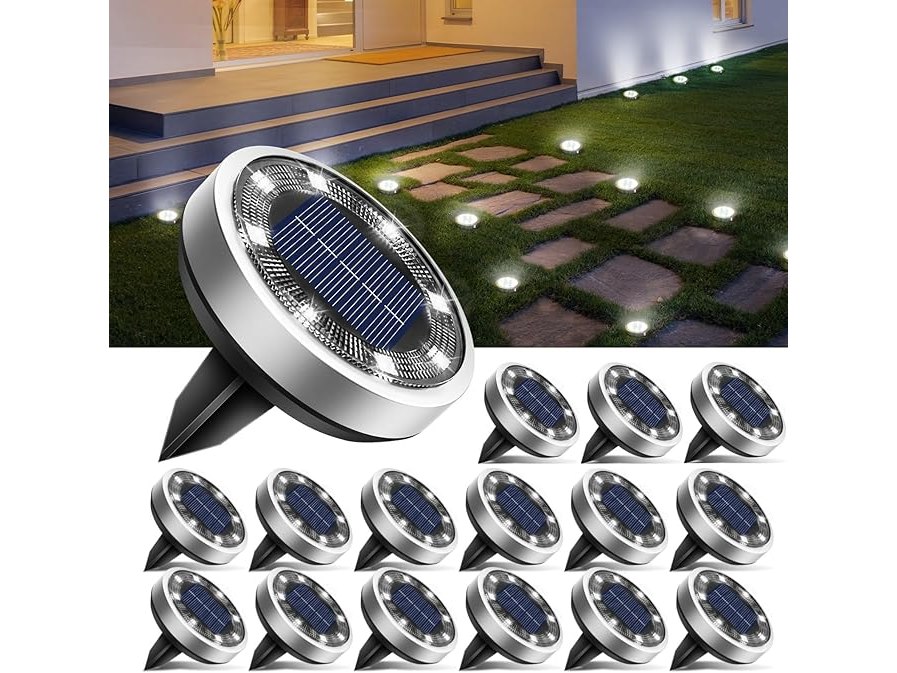 Minieme gebruikssporen, getest en werkend, ok, originele verpakking ontbreekt, Btfarm krachtige solarlampen voor de tuin (16 stuks), 8 leds, led-spots op zonne-energie voor buiten, waterdicht, voor gazon, oprit, binnenplaats, straten, landschap, koudwit, B0DPXCB4BW