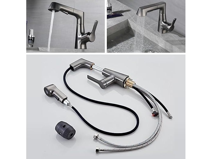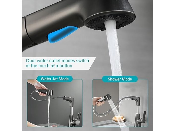 Ongebruikt, volledig, ok, Liropau Keukenkraan met pull-down sproeier, enkele handgreep hoge boog matzwarte uittrekbare keukenkraan, aanrecht kraan twee waterdoseermodi met 60 cm uittrekbare slang, B0CRRF1SC7