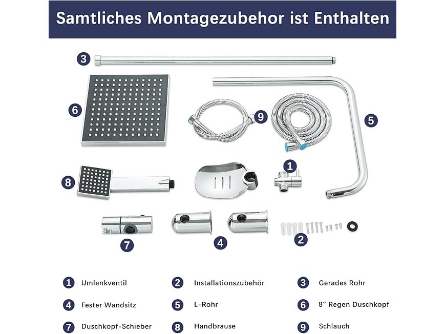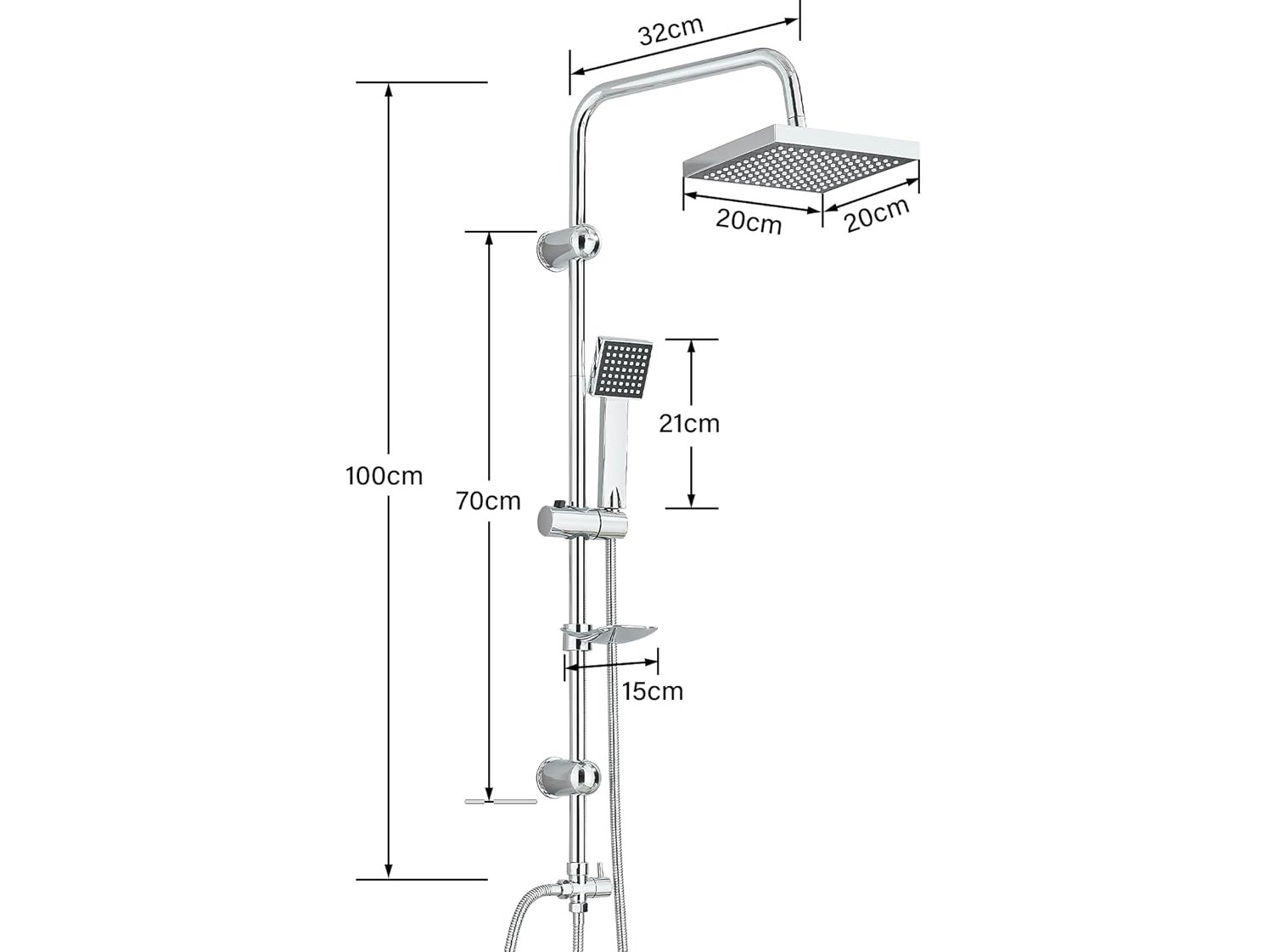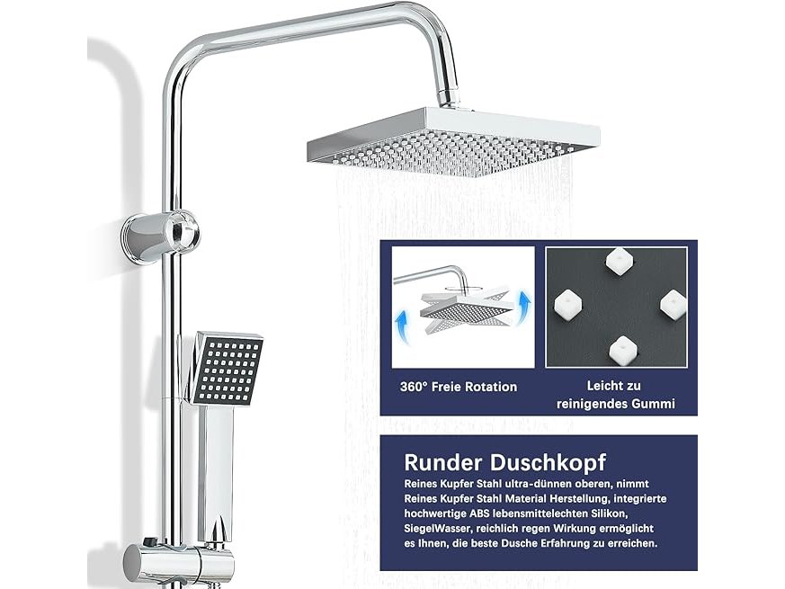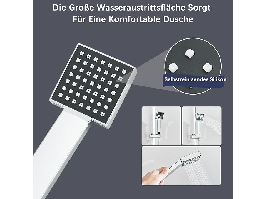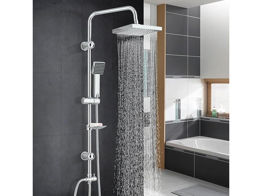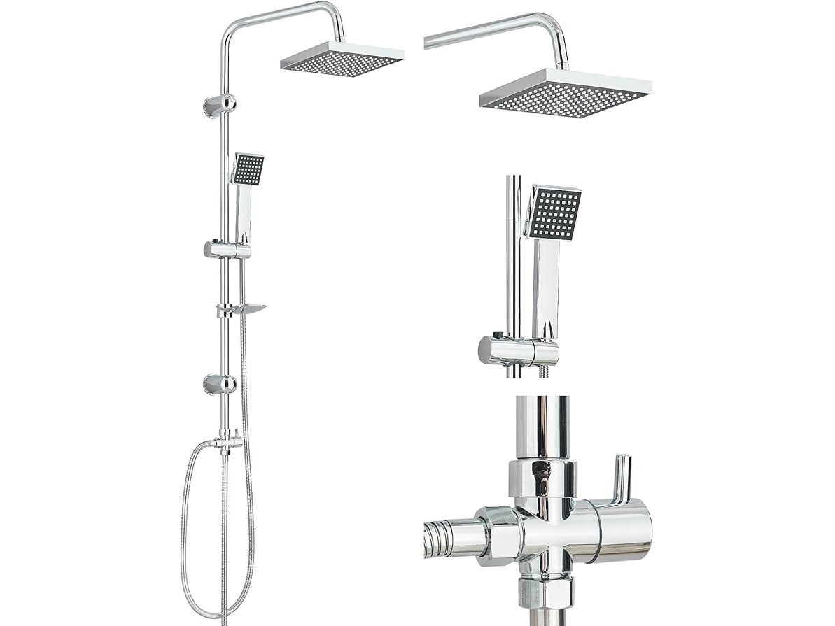 Ongebruikt, volledig, ok, beschadigde verpakking, Hevenaov Douchekolom zonder kraan, douche voor badkamers, hydromassagezuil, doucheset, chroom, vierkant, eengreepsmengkraan van roestvrij staal, vierkante doucheset, 20 x 20 cm, B0F18GD8DH