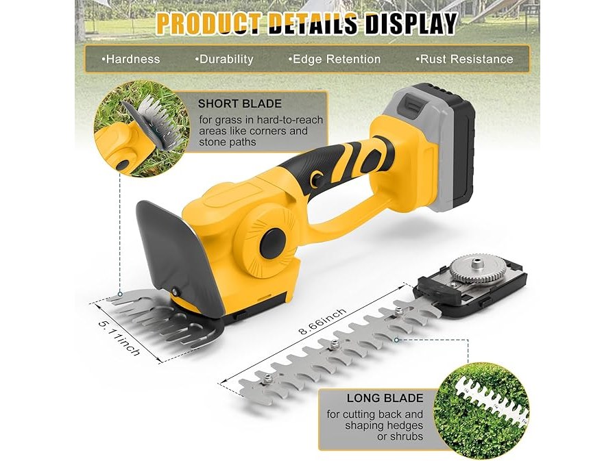 Ongebruikt, getest en werkend, ok, handschoenen ontbreken, Panthem Accu-grasschaar, struikschaarset, compatibel met Dewalt 18 V 20 V, tuinschaar, heggenschaar, handheld gazonschaar, 13 cm/22 cm, struiktrimmer, grasmes (zonder accu), B0D3TRRVWW