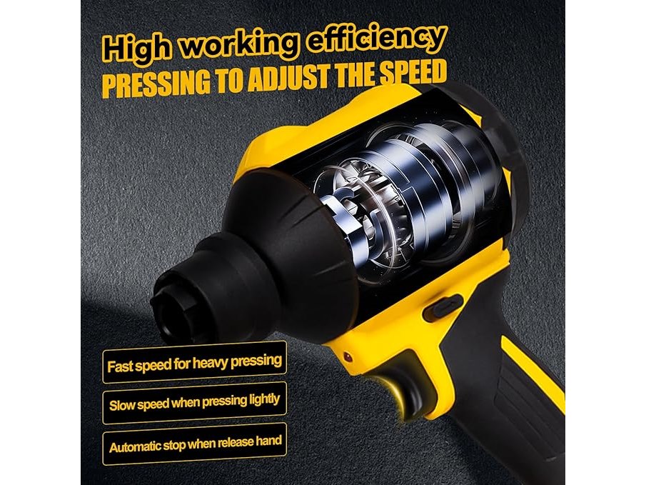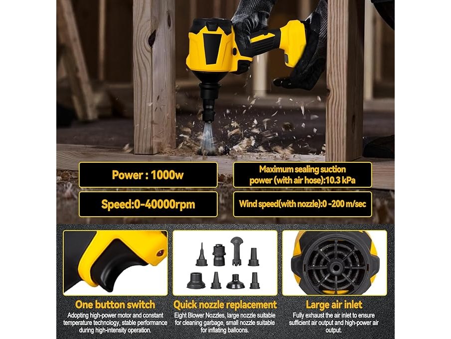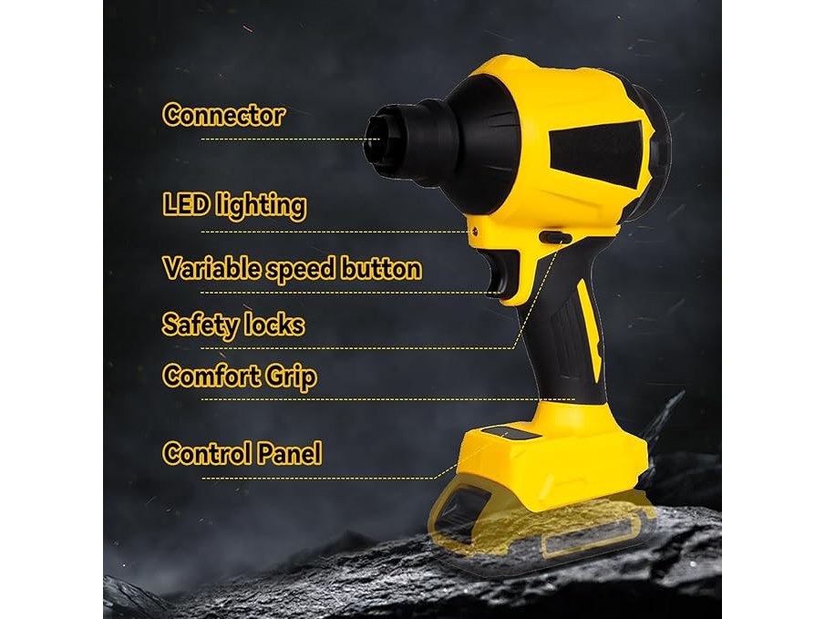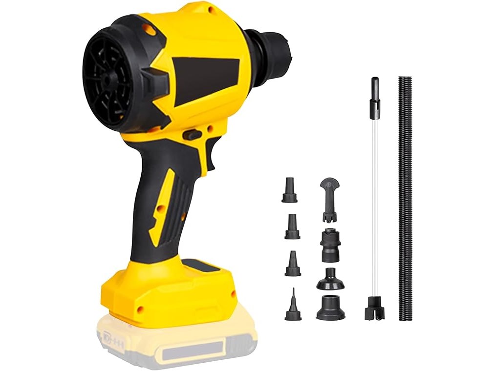 Ongebruikt, getest en werkend, ok, exclusief accu, Draadloze stofblazer voor Dewalt 18 V 20 V accu, handheld motor met progressieve snelheid van 1000 W met ledlicht en 8 sproeiers, 40.000 omw/min voor garages, werkplaatsen, zagerij, B0DP9K6PTQ