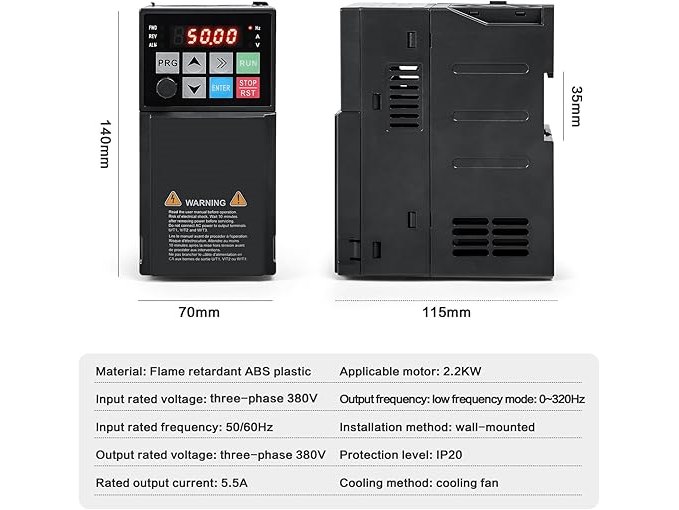 Lichte gebruikssporen, niet getest, ok, verpakking ontbreekt, DEWIN Variabele frequentieaandrijving 2,2 kW 380 V VFD omvormer frequentie-omvormer VFD 380 V driefasige ingang, driefasige uitgang (model: MS500-4T-2.2G), B0DR8PTC25