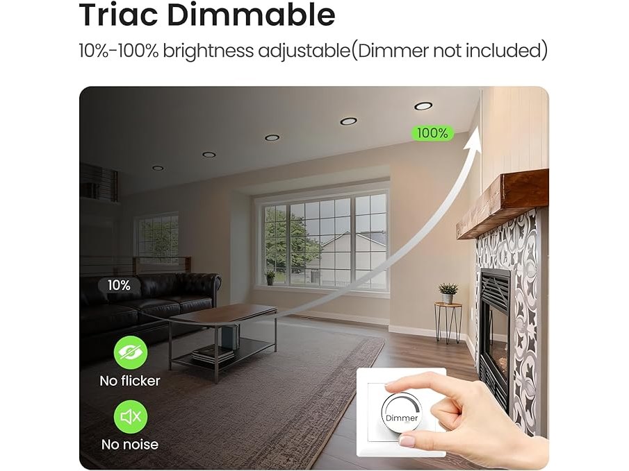 Ongebruikt, getest en werkend, ok, ALUSSO Led-inbouwspot, extra vlak, 7 W, 510 lumen, zwart, dimbaar, warmwit, 3000 K, neutraal wit, 4000 K, koud wit, 6500 K, 230 V, plafondverlichting voor badkamer, keuken, woonkamer, 6 stuks, B0CZJJNJMZ