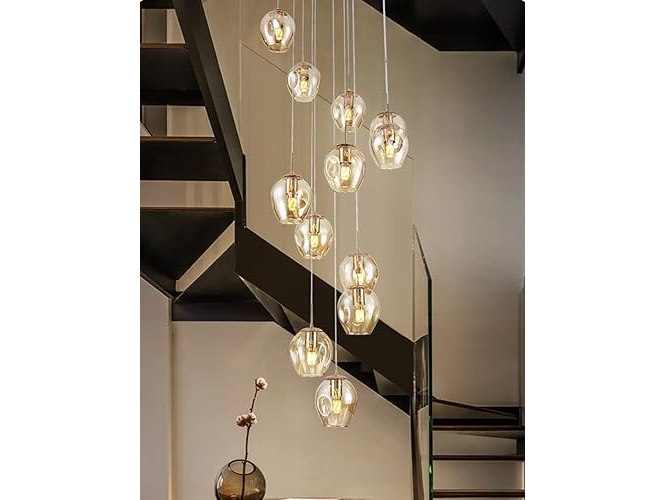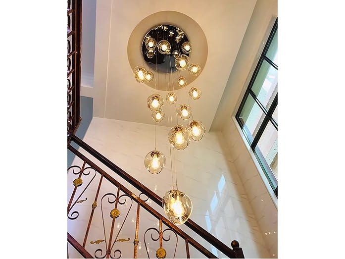 Ongebruikt,getest en werkend, volledig, ok, Moderne, eenvoudige wenteltrapkroonluchter met kristallen lampenkap, plafondbollen, glazen bubbellamp, grote hanglamp voor woonkamer, hal, duplex hanglamp (10 lampen) [Energieklasse A],B0BNVLPY68