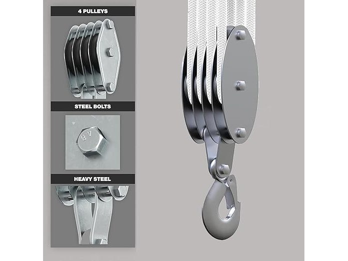 Ongebruikt, ok, Kleine katrol met touw, 2000 kg, katrol met touwrem, 4 ronden verstelbare kabelratel met 20 m nylon touw, hefrol voor boots, aanhanger, caravan, marine, B0DYNX72F1