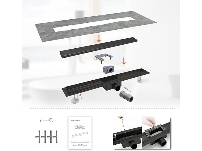 Ongeopend, ok, SaniteModar Doucheafvoer Zwart 30 cm, 2-in-1 Paneel Douchegoot met Sifon, Deodorant en Haarfilter, Doucheafvoer van Roestvrij Staal, B0CQQWH4DP