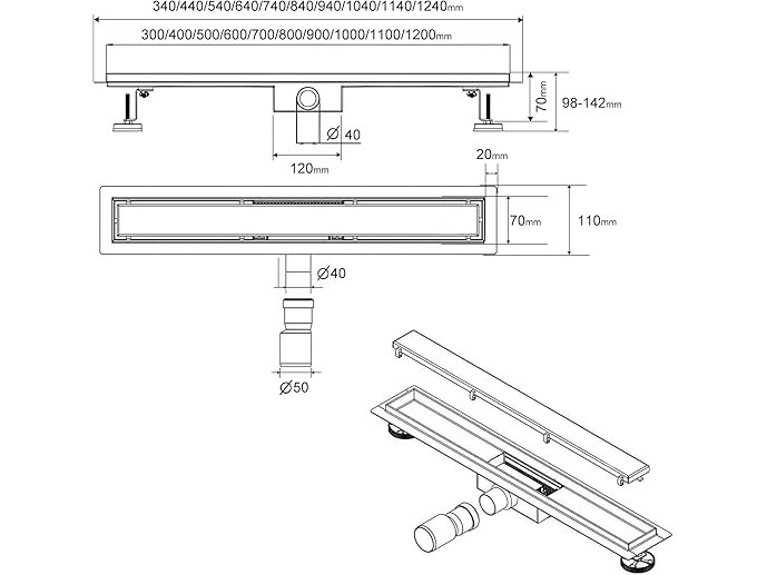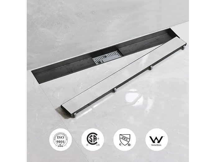 Ongeopend, ok, SaniteModar Doucheafvoer Zwart 30 cm, 2-in-1 Paneel Douchegoot met Sifon, Deodorant en Haarfilter, Doucheafvoer van Roestvrij Staal, B0CQQWH4DP