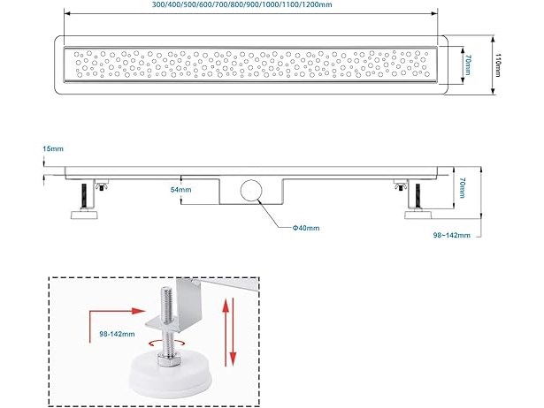 Ongeopend, sunrik Douchegoot 100 cm, extra vlak, roestvrijstalen vloerafvoer, complete set met sifon, B0B7J4Q99J
