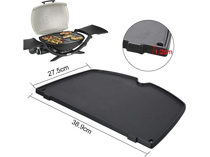 Ongebruikt, ok, Gietijzeren grillplaat voor Webers Q200, Q220, Q240, Q260, Q2000, Q2200, Q2400 series, 38,9 x 27,5 cm braadpan en grillrooster, B0BSFYN55F