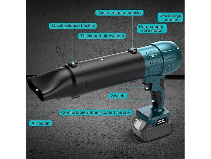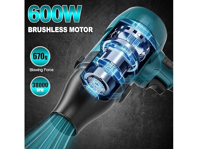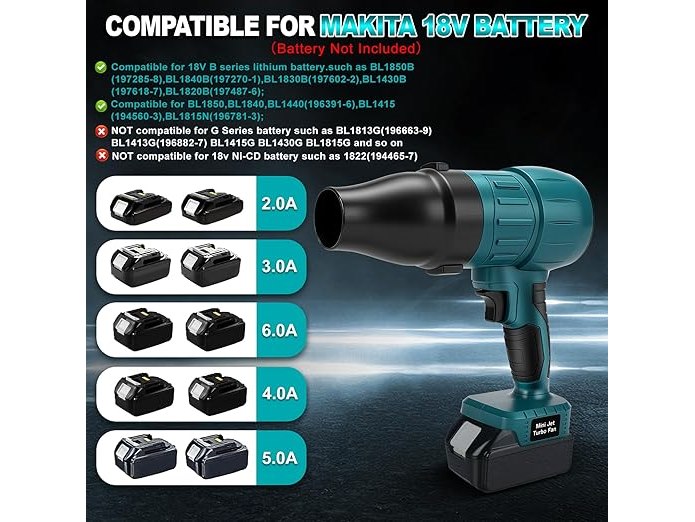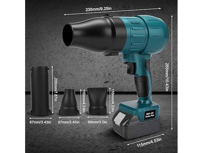 Minieme gebruikssporen, getest en werkend, volledig, ok, ConBlom Mini-accu-bladblazer, compatibel met Makita 18 V, 120 km/u, 38000 tpm borstelloze motor, 3 sproeiers inbegrepen, licht en draagbaar, voor terras, gazon, autoreiniging en camping (zonder accu), B0FD36Z3XL