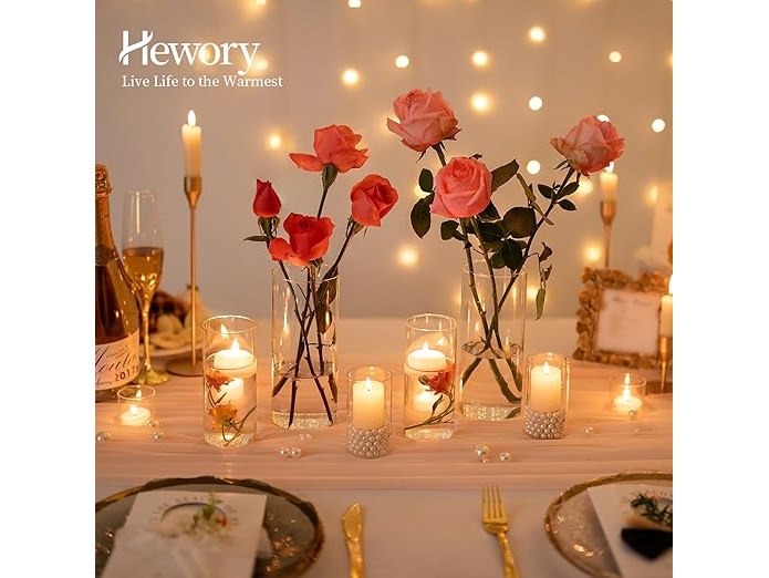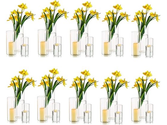 Ongebruikt, volledig, ok, Hewory Glazen bloemenvaas, 30 stuks, transparante ronde bloemenvazen voor de woonkamer, glazen bloemenvaas voor tafelpresentatie in de eetkamer, windbestendige kaarsenhouders voor bruiloft, 10 / 15 / 20 cm, B0BR5F92NT