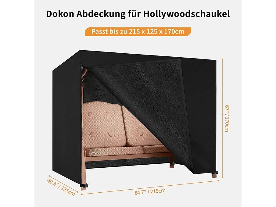 Ongebruikt, ok, opbergzak deels gescheurd, Dokon Schommelbank beschermhoes 3 zits, waterdicht, winddicht, UV-bestendig, scheurvast, 600D Oxford-weefsel, afdekking voor tuinschommel (215x125x170cm) - zwart, B08PKTQBY9