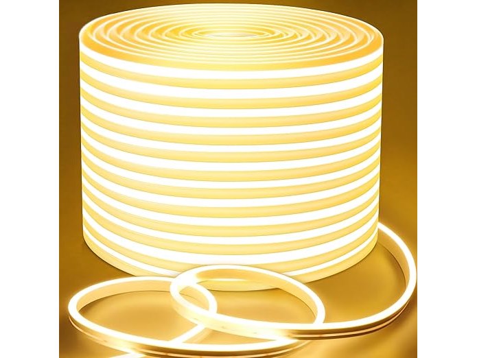 Gebruikssporen, getest en werkend, ok, originele verpakking ontbreekt, Lamomo Ledstrip (20 m), warm wit, dimbaar, neon ledstrip, waterdicht, 3000 K, siliconen, doe-het-zelf, flexibel, 24 V, lichtstrip met voeding en controller voor binnen en buiten, thuis, keuken decoratie, B0DFCPB5GK