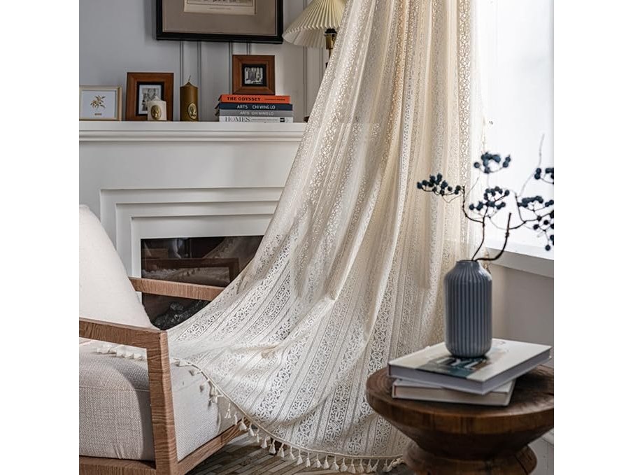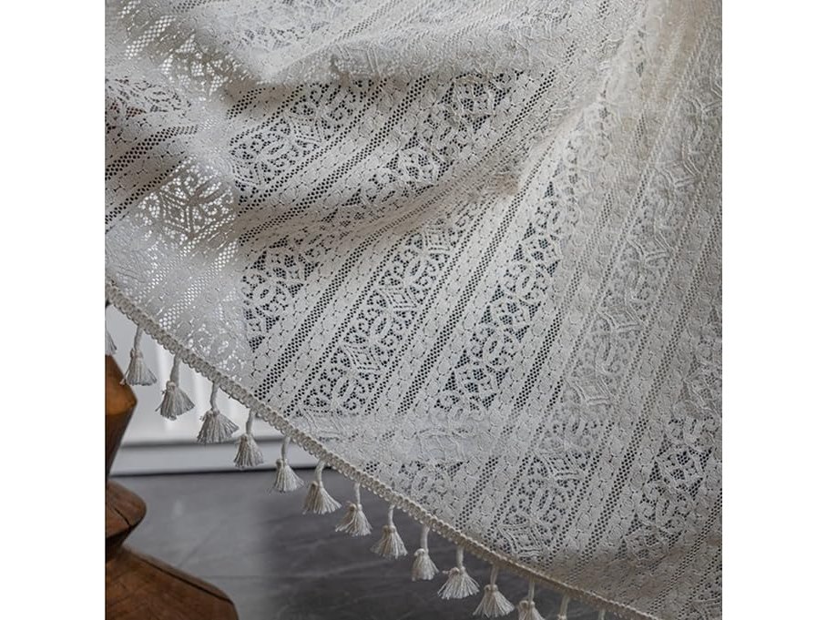 Ongebruikt, ok, Tospass Vintage landelijke stijl gehaakt breigordijn Boho Boheemse gordijnen uitgehold met kwastjes Set van 2 gordijnen Buiten katoenen tuinen voor woonkamer slaapkamer gordijnen 150 x 240 cm beige, B0B82C2GW3