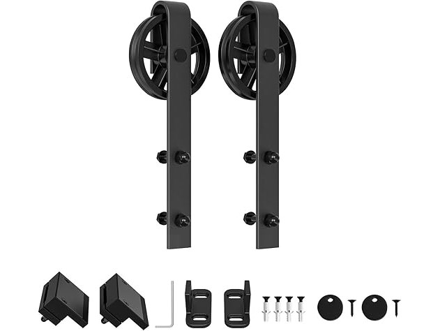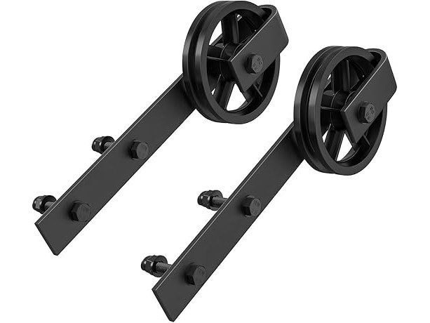 Ongebruikt, ok, originele verpakking ontbreekt, WINSOON Schuifdeurophanging hardware voor schuurdeur, 2 stuks, zwart, groot spaakwiel (2 stuks), B079HRY8H2