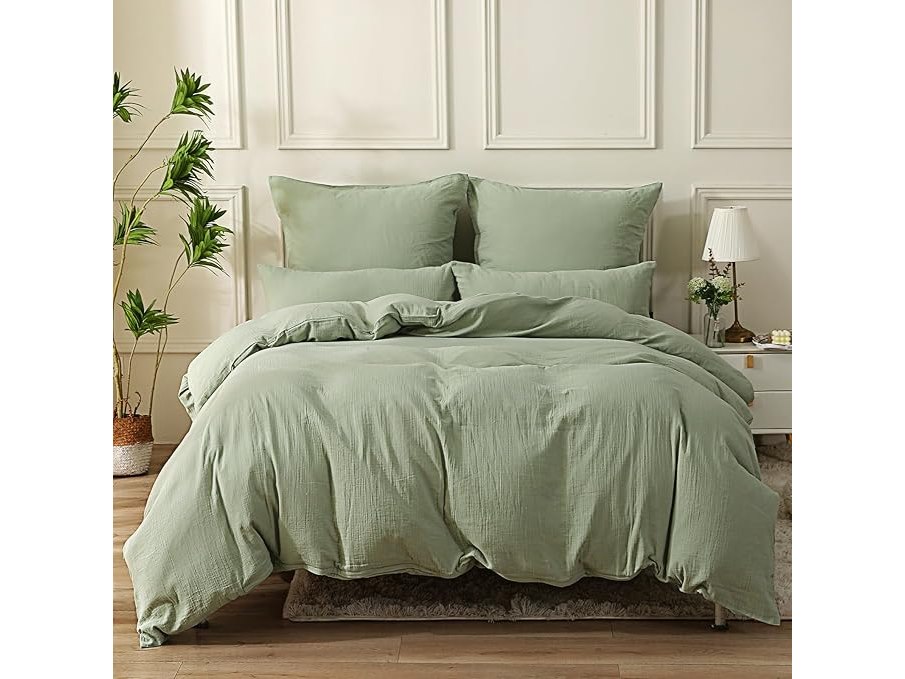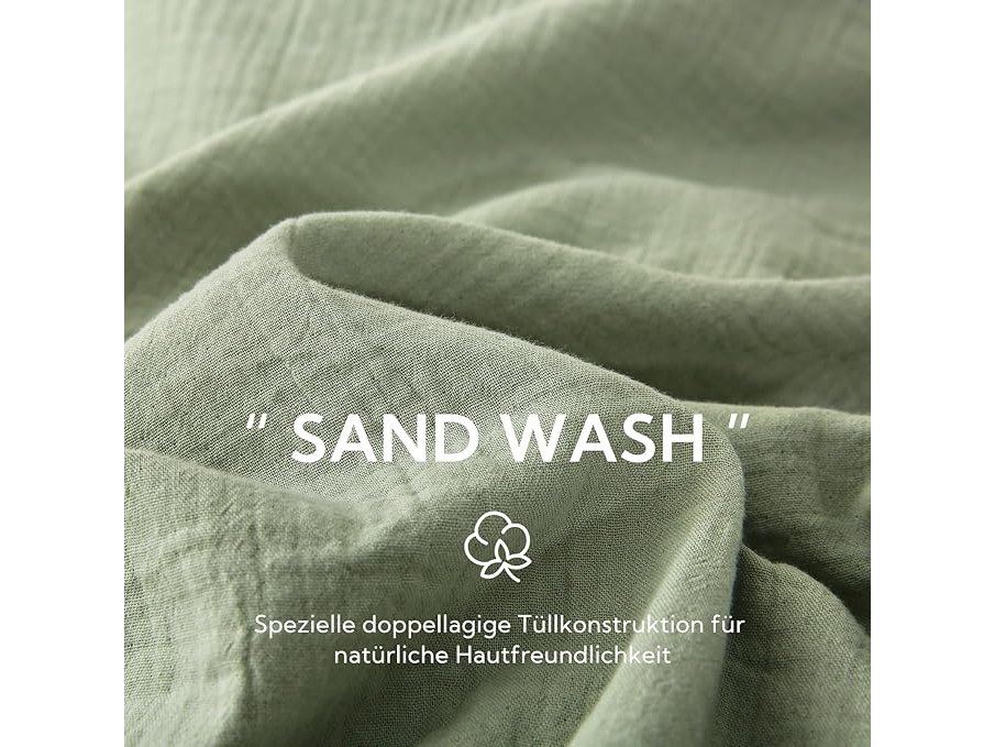 Lichte gebruikssporen, ok, originele verpakking, ontbreekt, SOULFUL Mousseline Beddengoed (220 x 240 cm) Katoen, Beddengoedsets 1 Dekbedovertrek met 2 Kussenslopen 80 x 80 cm, Oeko-Tex Beddengoed Zoethoutgroen met Ritssluiting, B0CGZJHN35