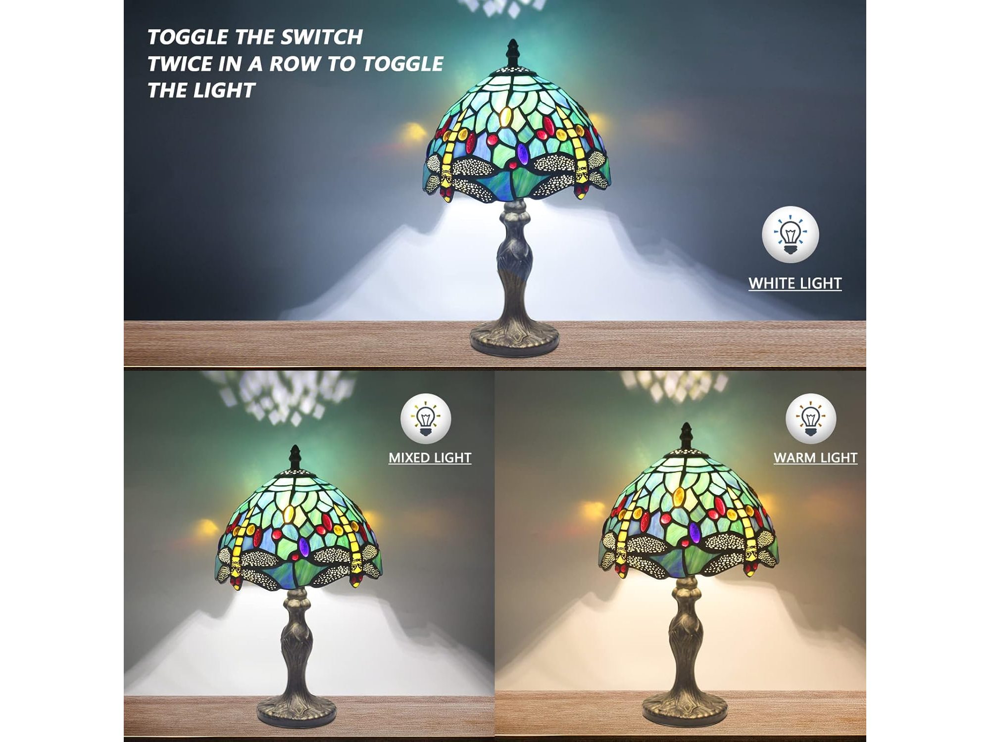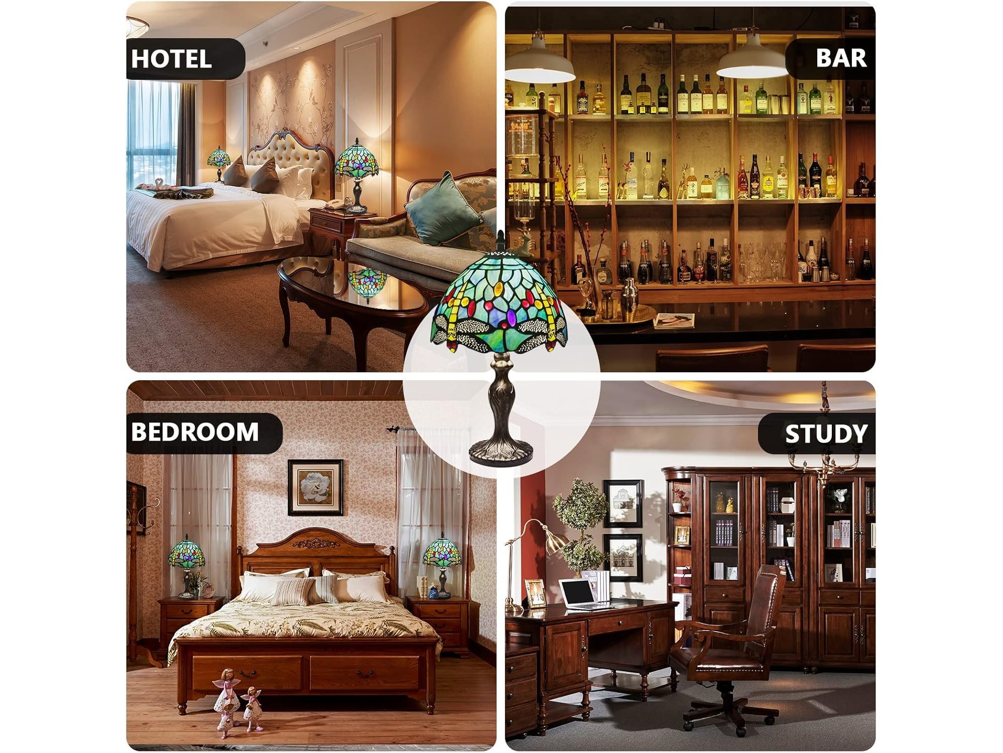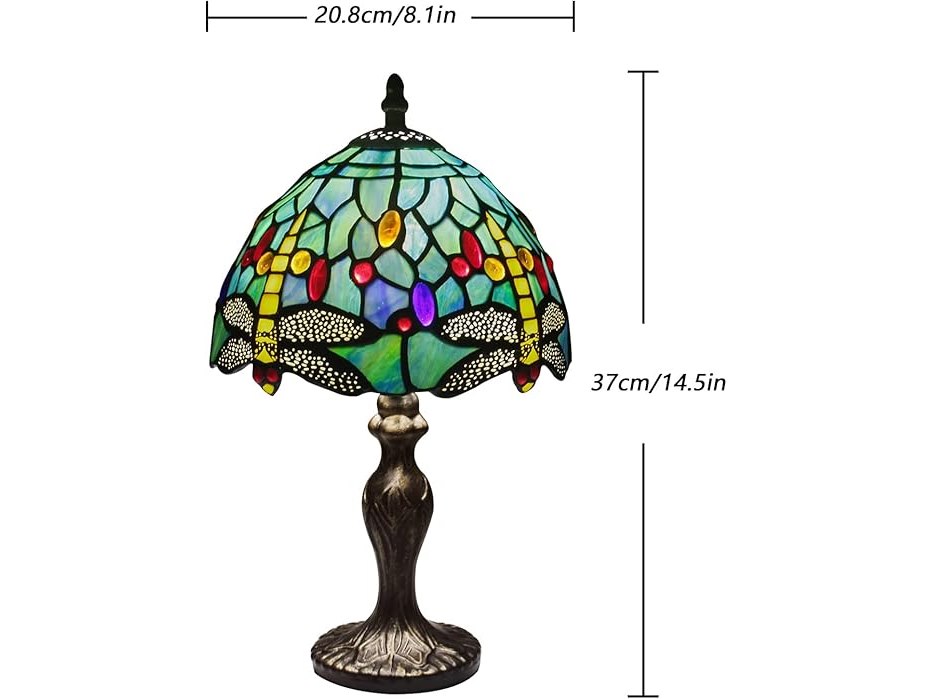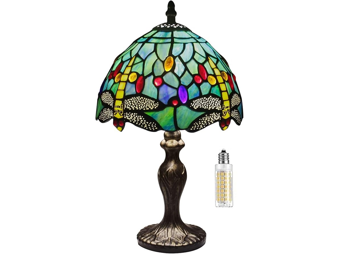 Ongebruikt, getest en werkend, ok, MIAOKE Tiffany Tafellamp, vintage stijl, handbeschilderde glazen tafellamp, voor slaapkamer, kantoor, groene libel, B09XQVBS1V