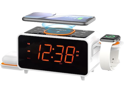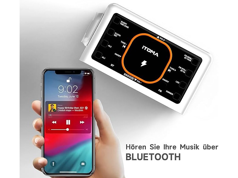 Ongebruikt, getest en werkend, ok, iTOMA Wekkerradio met dubbele draadloze oplaadfunctie en Bluetooth-luidspreker, digitale FM-radio, twee USB-poorten, dubbel alarm, nachtlampje, automatische en handmatige dimmerregeling CKS209, B09PB3XV7Q
