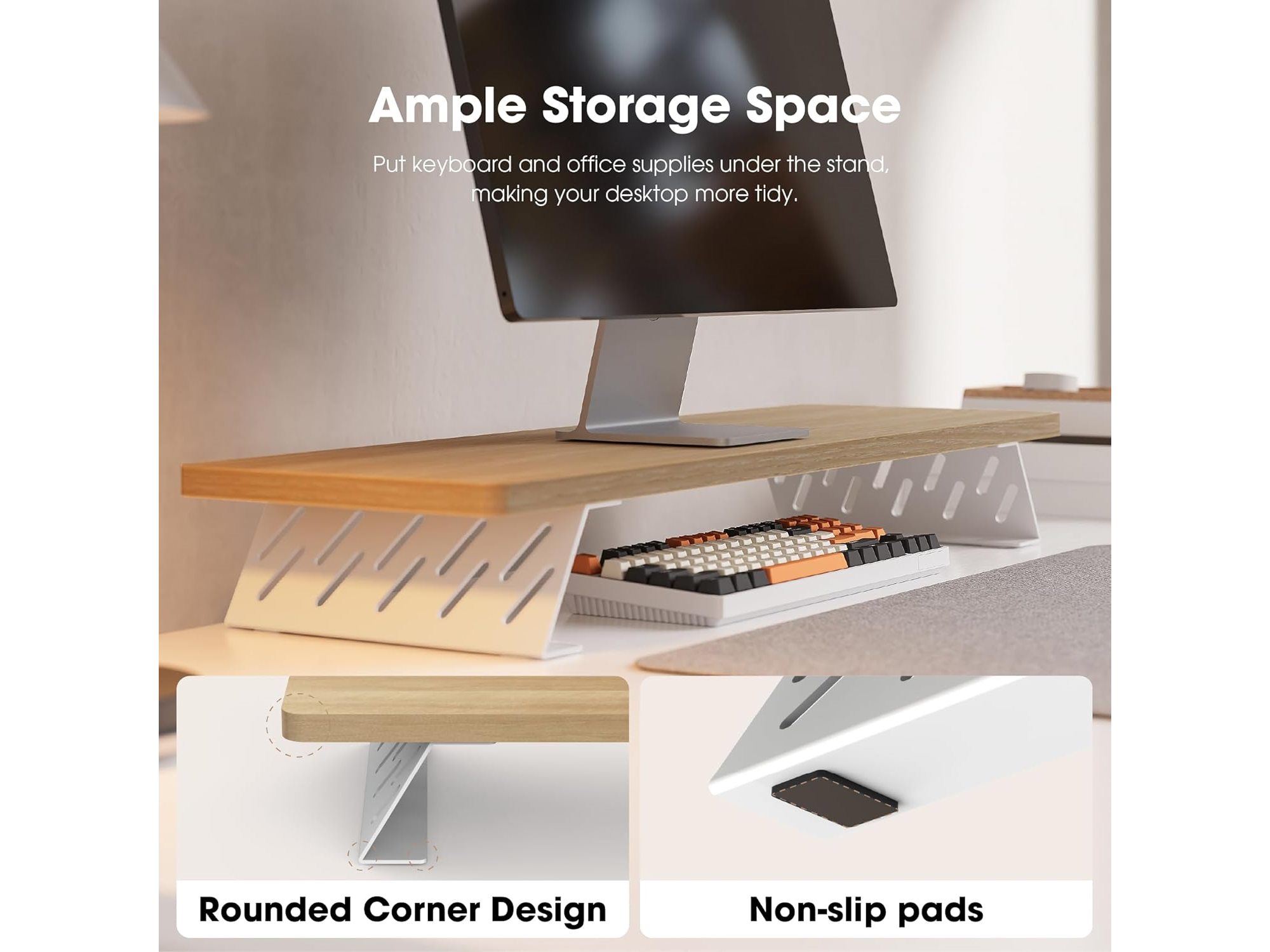 Ongebruikt, volledig, ok, Fenge Monitorstandaard (80 cm) Grote Computermonitorstandaard voor 2 onitoren, Huten Bureau-Organizerstandaard voor PC, Laptop, Printer, Tv, 80 × 23,5 × 10 cm, Maximaal Draagvermogen 25 kg, Eiken, B0D7ZD5R9H