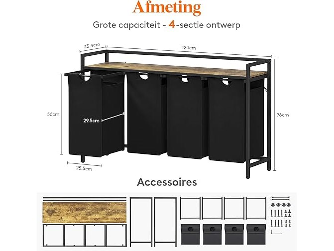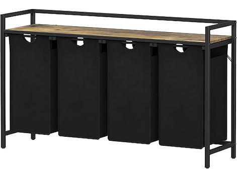 Ongebruikt, volledig, ok, Lifewit Wasmand (4 secties), 168L Uittrekbare wasmand organizer met grote bovenste plank en 4 verwijderbare zakken en handvatten, Was sorteerder voor wasruimte, slaapkamer, badkamer, slaapzaal, zwart, B0C1ZF3MMG