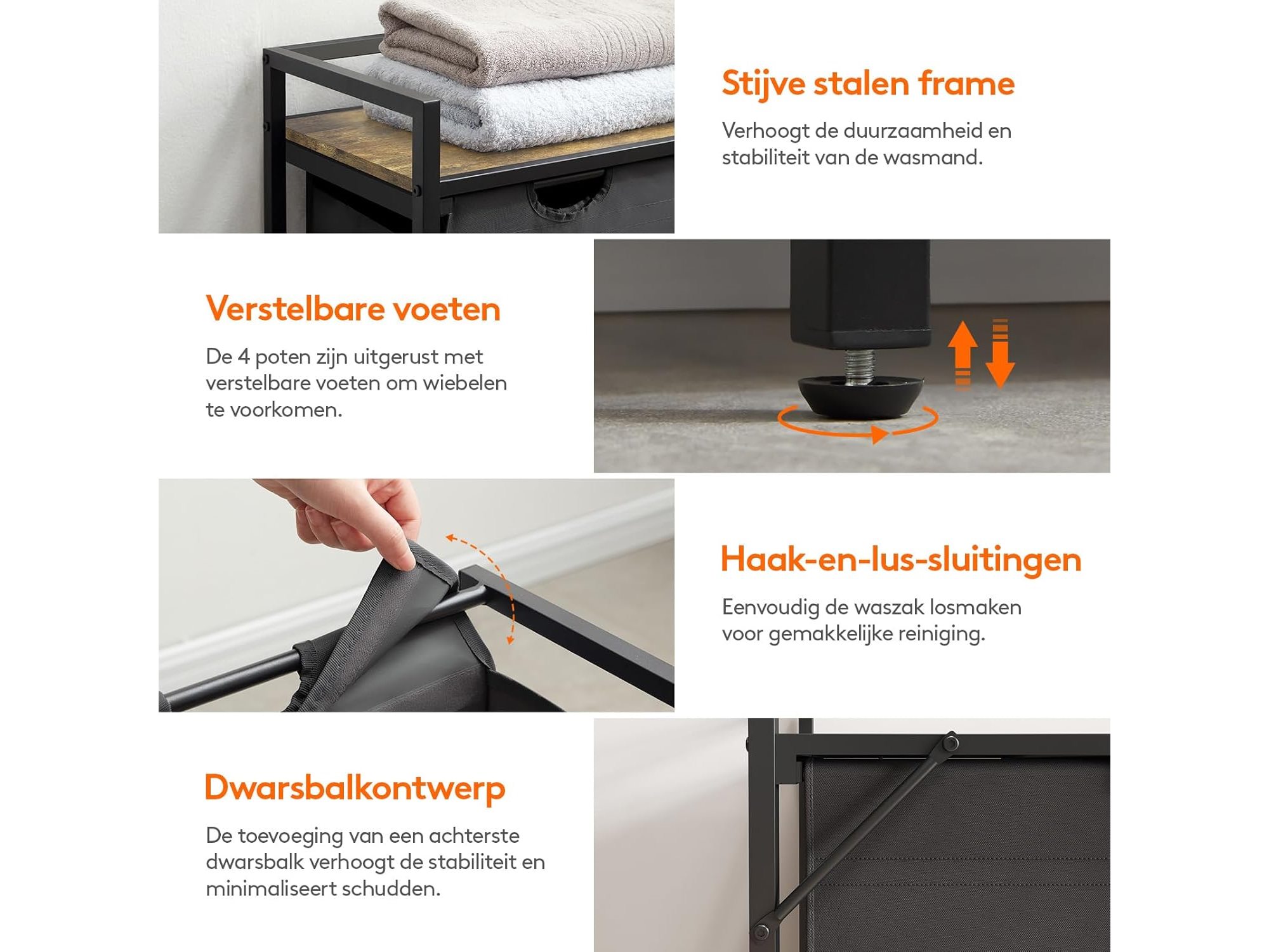 Ongebruikt, volledig, ok, Lifewit Wasmand (4 secties), 168L Uittrekbare wasmand organizer met grote bovenste plank en 4 verwijderbare zakken en handvatten, Was sorteerder voor wasruimte, slaapkamer, badkamer, slaapzaal, zwart, B0C1ZF3MMG