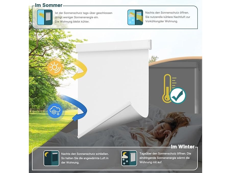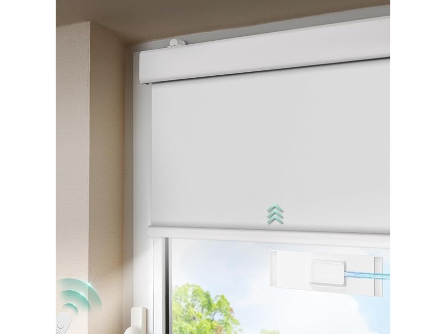 Ongebruikt, ok, DENFOON Verduisterend rolgordijn zonder elektrische boor, 80 x 200 cm, wit, ondoorzichtig gemotoriseerd rolgordijn met afstandsbediening en zonnepaneel voor ramen, B0CLDNX4RW