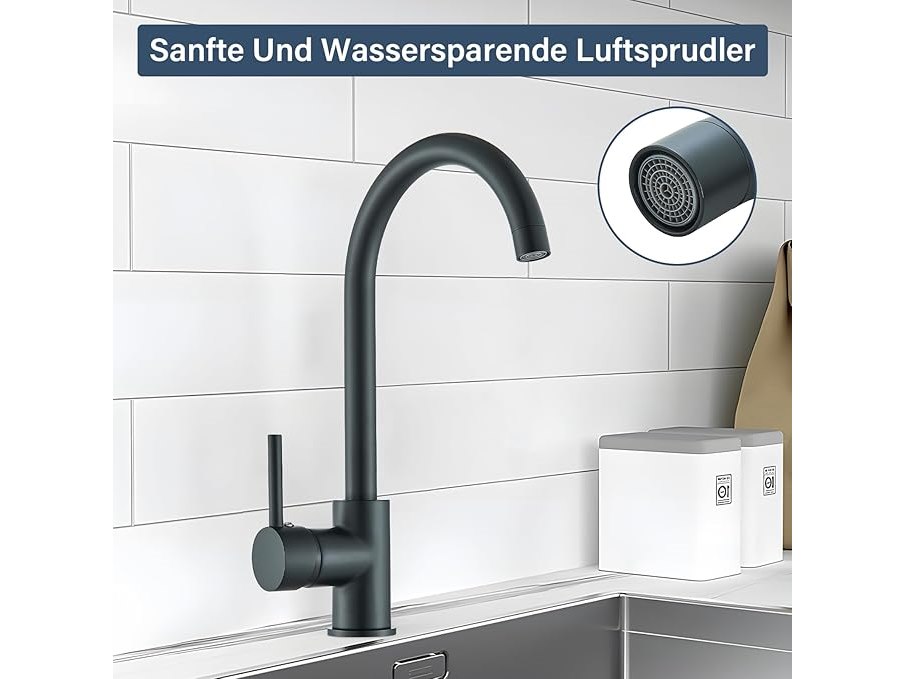 Ongebruikt, volledig, ok, Hevenaov keukenkraan lage druk 360° draaibaar roestvrij staal lagedruk keukenkraan zwart, B0DDXD2B6Y