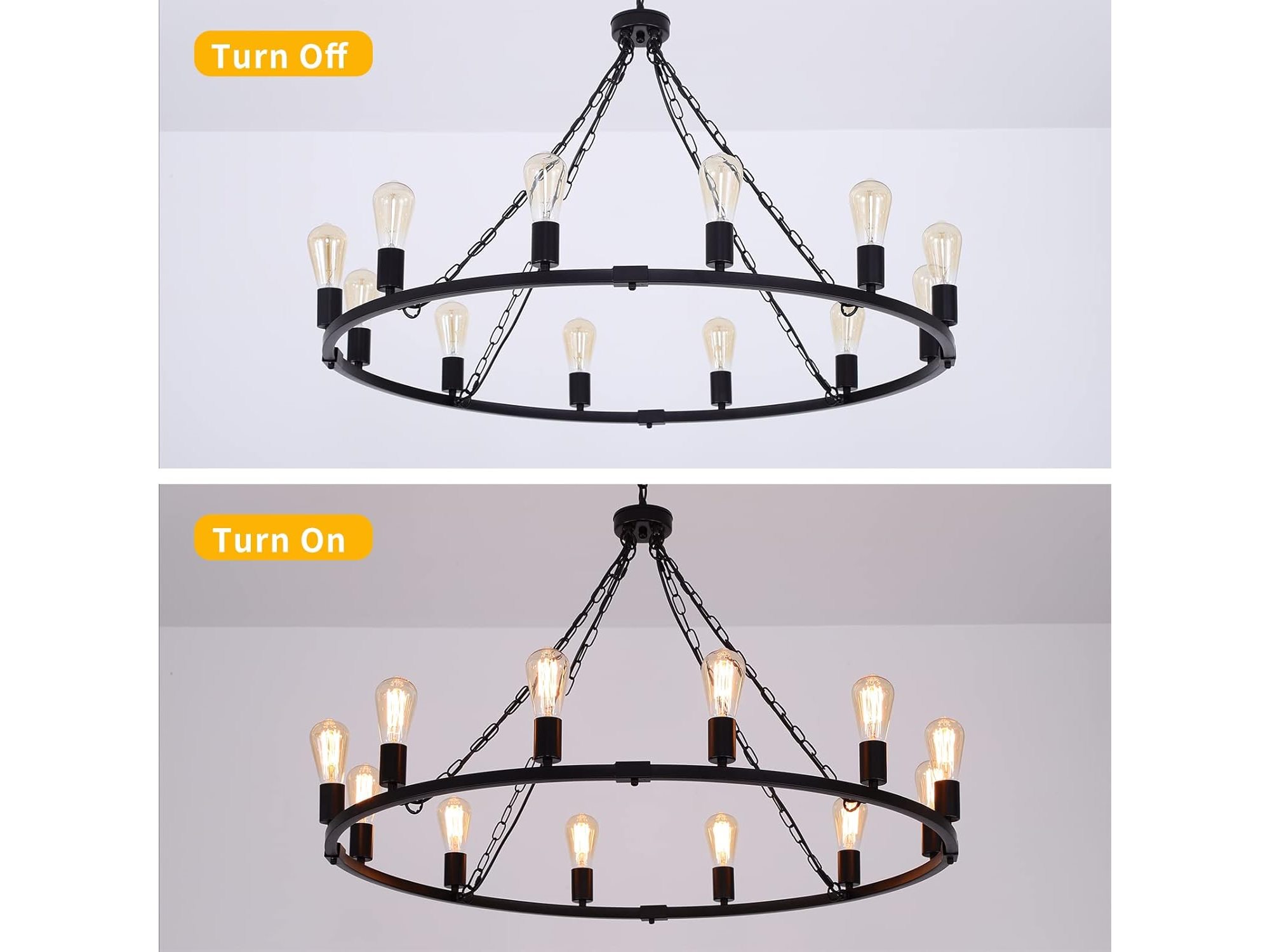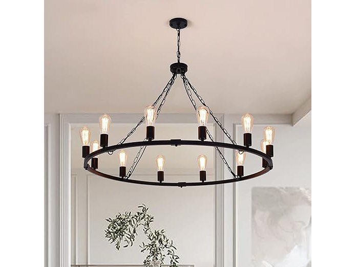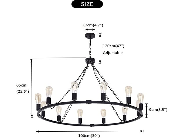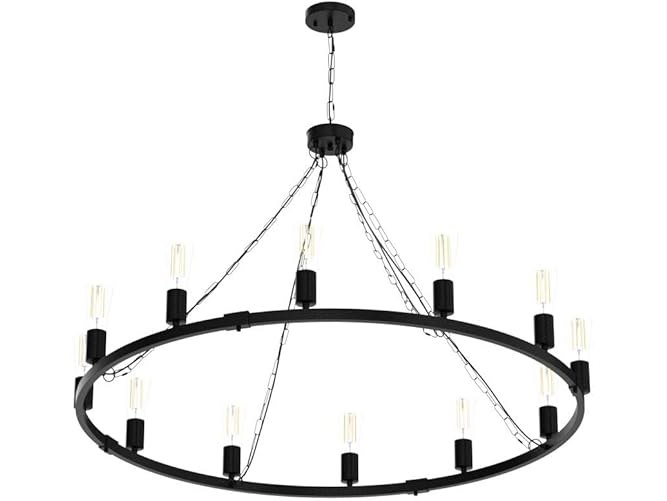 Minieme gebruikssporen, getest en werkend, ok, Eoodis Rustieke Kroonluchter 12-Lichts Wagon Wheel Kroonluchter Zwarte Kroonluchters Plafondlampen In Hoogte Verstelbaar voor Eetkamer Keuken Woonkamer Slaapkamer (Diameter 100cm), B0BCKGF7TG