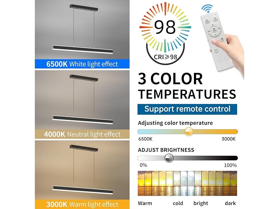 Ongebruikt, getest en werkend, ok, Mikeru LED hanglamp eetkamer 48 W hanglamp eettafel zwart lineaire hanglamp keuken dimbaar met afstandsbediening 10%-100% kleurtemperatuuraanpassing eetkamerlamp lang 120 cm, B0CY2F76ZF