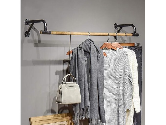 Ongebruikt, volledig, ok, FKDEKUZI Houten muur kledingrek staaf, industriële kleren staaf, kledingrek commerciële kleding Display Rack (maat: 100x29x16cm), B07VKT3766