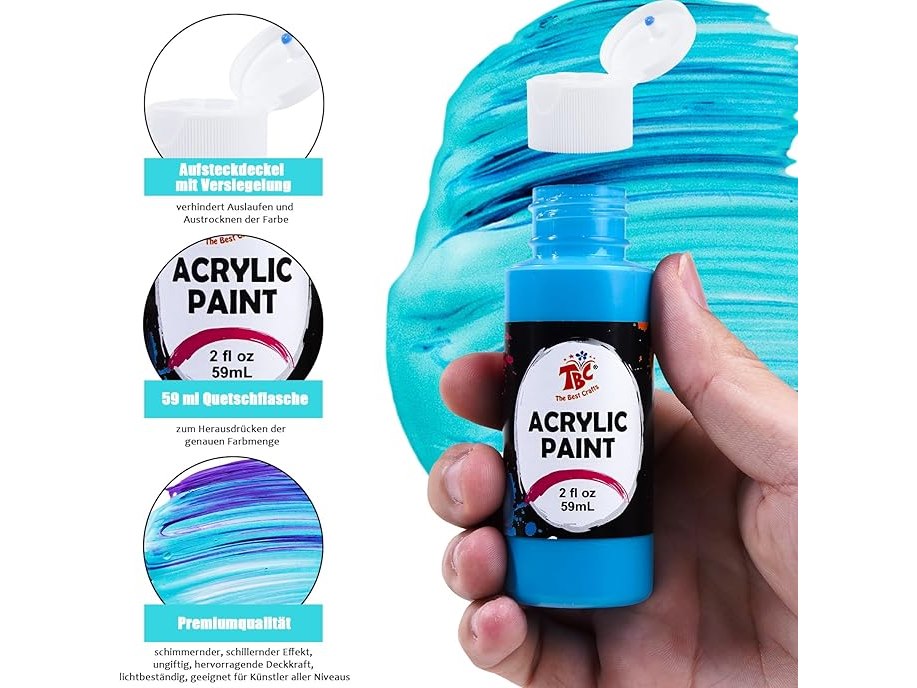 Ongeopend, TBC Acrylverfset, 48 x 60 ml, acrylverfset met 10 penselen, waterdicht en lichtecht, sneldrogend, acrylverf B0D3DQ8XRH