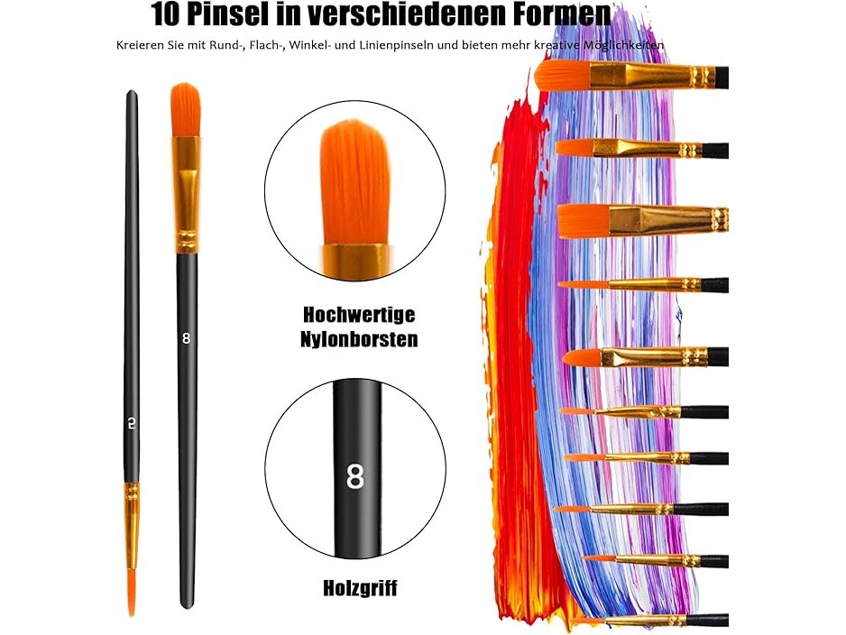 Ongeopend, TBC Acrylverfset, 48 x 60 ml, acrylverfset met 10 penselen, waterdicht en lichtecht, sneldrogend, acrylverf B0D3DQ8XRH