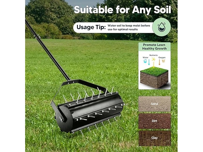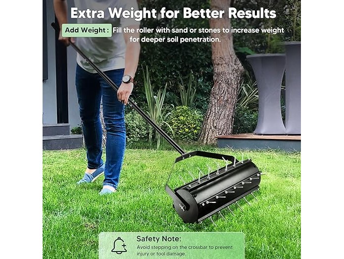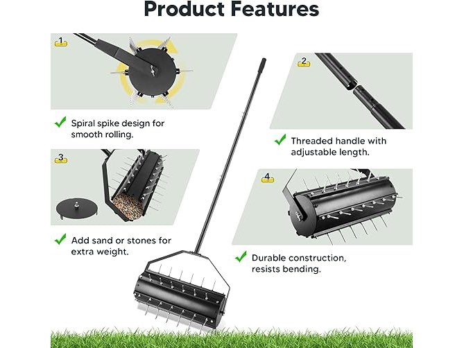 Ongebruikt, volledig, ok, Fachmach Tuin Rolling Gazon Beluchter, Gras Beluchter Roller Lange Spikes 6 cm, Afneembare Handvat, Heavy Duty Outdoor Handmatig Tuin Gazon Tool, Snelle Montage Ontwerp, 44 cm x 141 cm (LxH), B0FH3YY39T