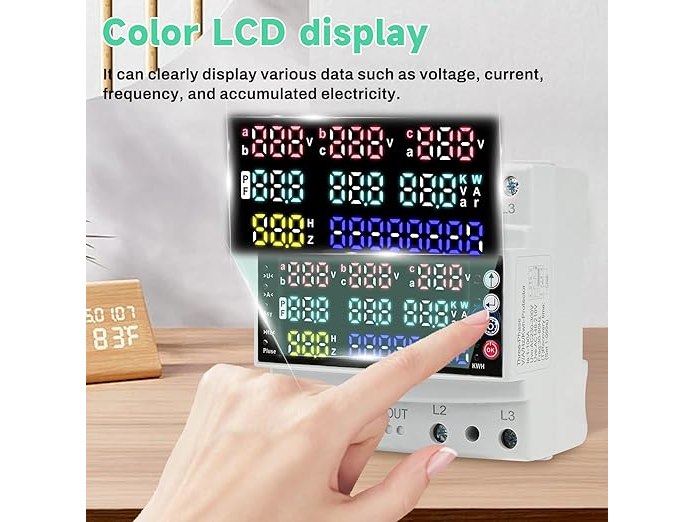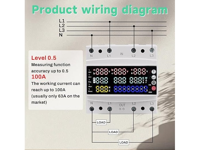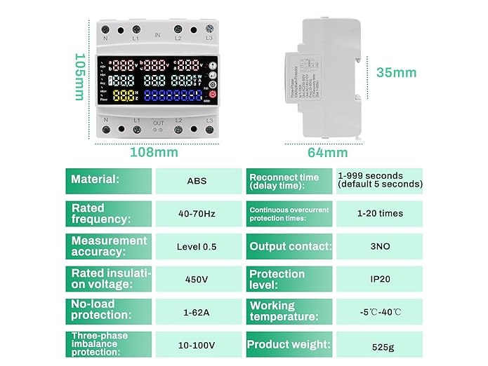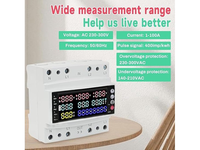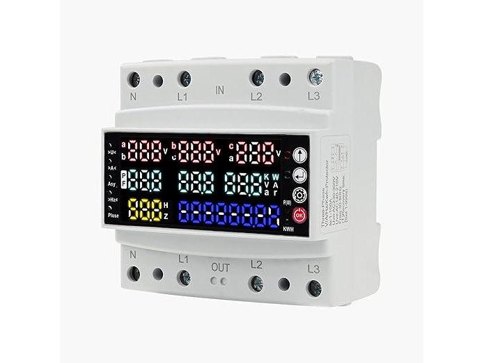 Ongeopend, ok, Stroommeter 3-fasen met overspanningsbeveiliging, driefasenspannings- en stroombalansbeveiliging/overspannings-/onderstroombeveiliging/nullastbeveiliging AC 230 V, B0DZHR6TBL