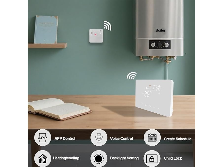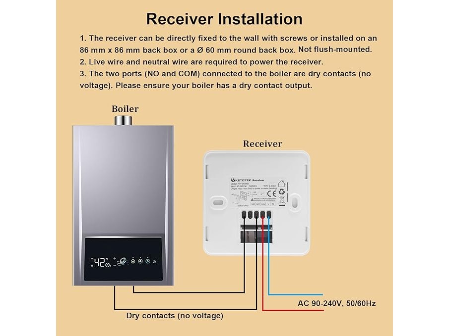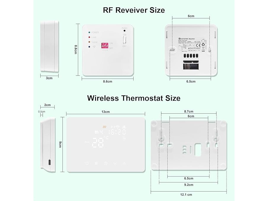 Ongebruikt, ok, KETOTEK Slimme Draadloze Thermostaat WiFi met RF Ontvanger 5A voor Ketel, Draadloze Kamerthermostaat Ontvanger kit Compatibel met Alexa, Programmeerbare, Tuya/Smart Life APP Bediening, Droog Contact, B0FLHZBK5X