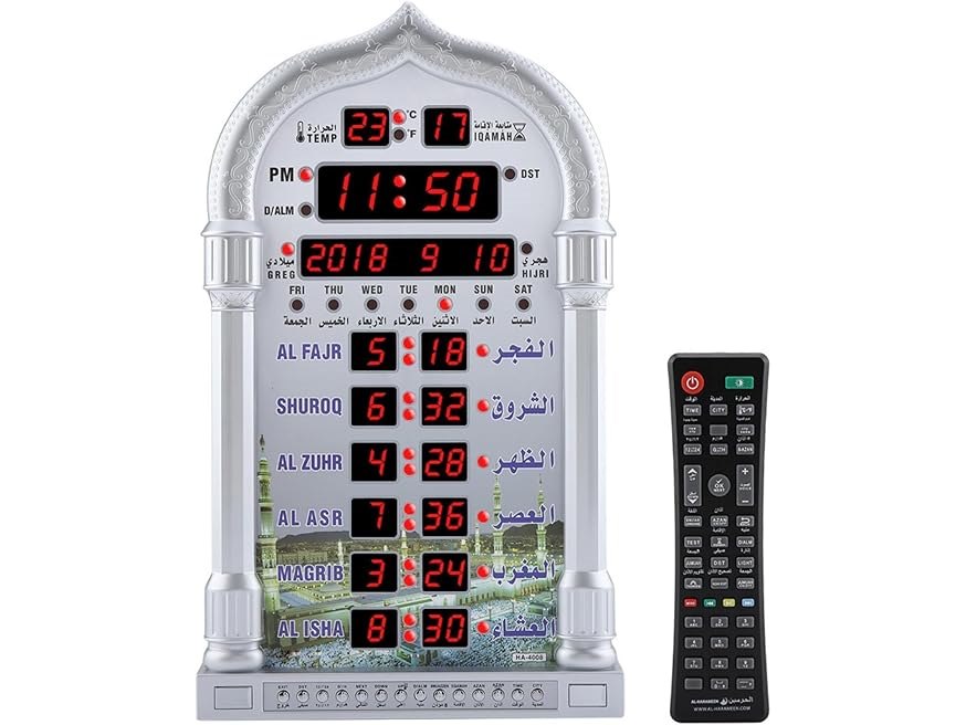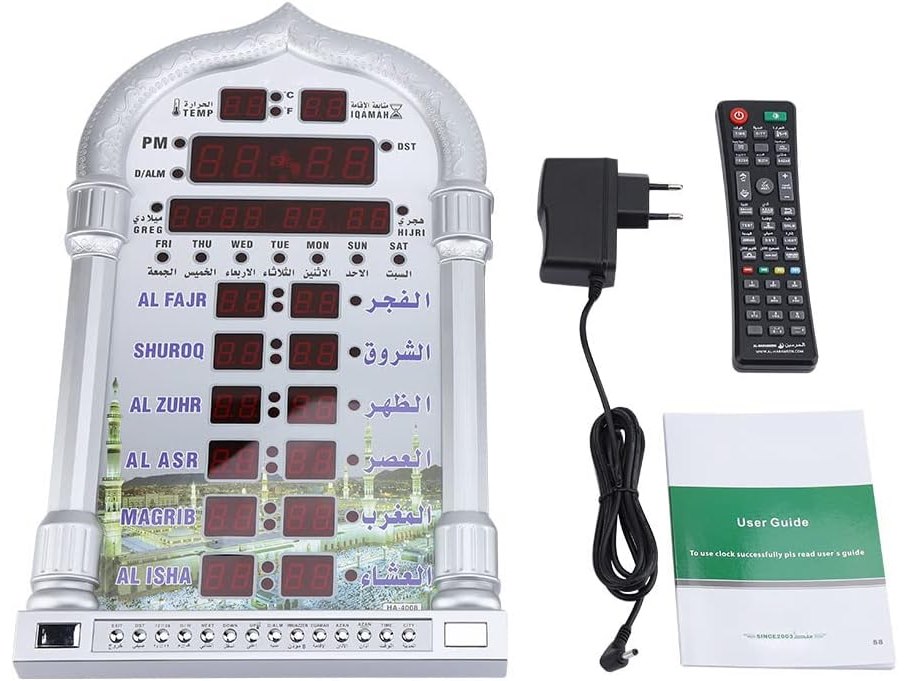 Minieme gebruikssporen, getest en werkend, ok, Jadeshay Moslim Wekker, Gebedsklok, Wandkalender, Automatische Moslim Islamitische Klok met Azan klok met EU-stekker, 110-240 V, B08GYLP9J5