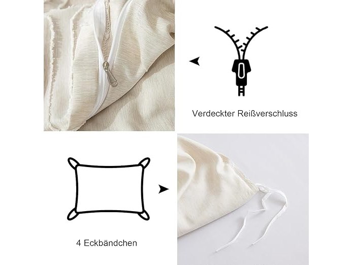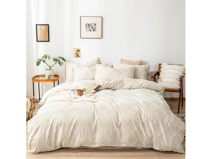 Lichte gebruikssporen, ok, originele verpakking ontbreekt, Freyamy Beddengoed, 135 x 200 cm, 4-delig getuft, boho, geometrische beddengoedset, beige, borduurwerk, modern, chic, microvezel, 2 dekbedovertrekken met ritssluiting en 2 kussenslopen 80 x 80 cm, B0DKT5XLNL