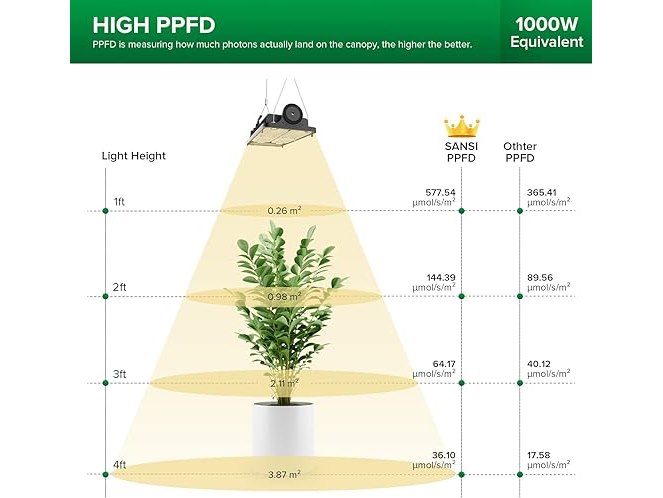 Minieme gebruikssporen, getest en werkend, ok, verpakking ontbreekt,, SANSI LED Grow Light voor kamerplanten, 1000W equiv. 2x4ft dekking Volledig spectrum dimbaar groeien licht met optische lens voor hoge PPFD, energiebesparende plant licht, B0BF49HG25