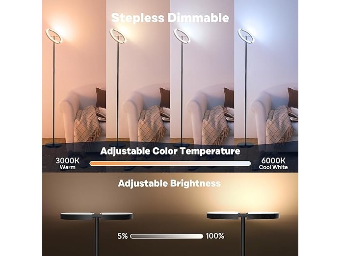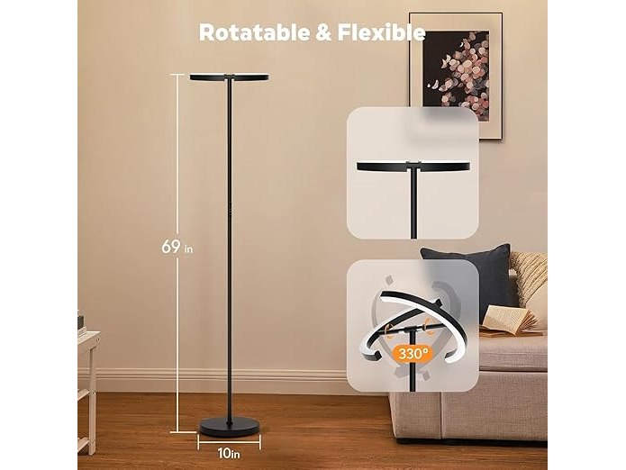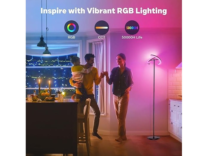 Gebruikssporen, getest en werkend, ok, afstandsbediening ontbreekt, originele verpakking ontbreekt, Sibrille RGB vloerlamp, woonkamer, led, dimbaar, 20 W, RGB, moderne plafondlamp met afstandsbediening, 1300 lm, 3000 K-6000 K, touch-vloerlamp, leeslamp voor woonkamer, slaapkamer, kantoor, hotel, B0CTKBTR7H