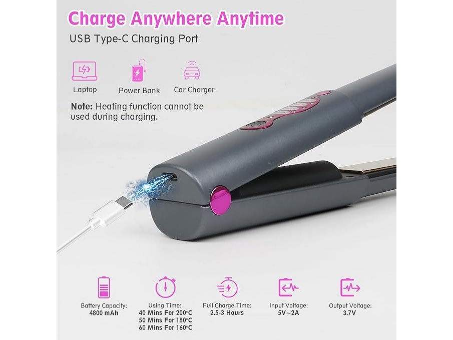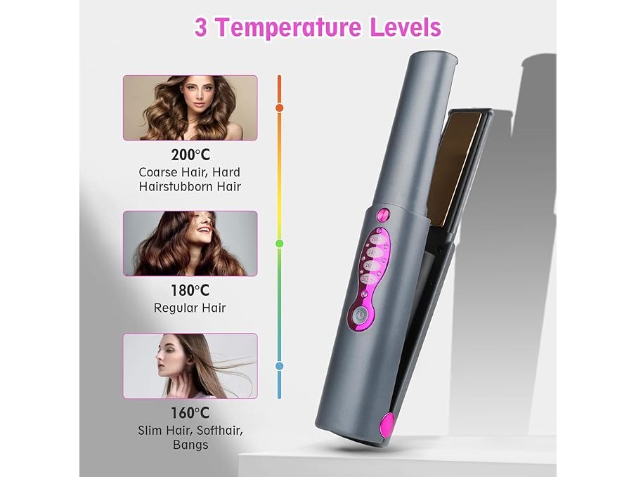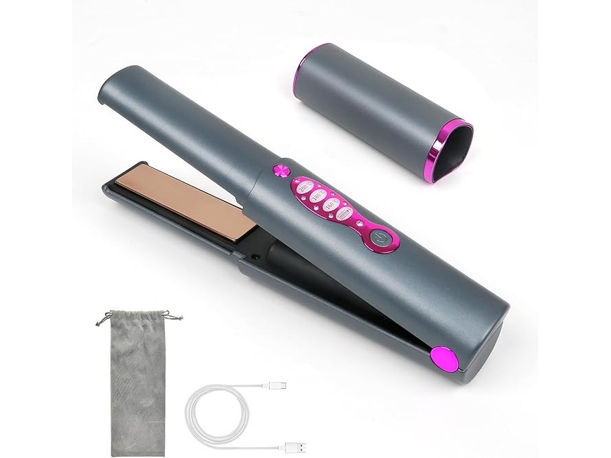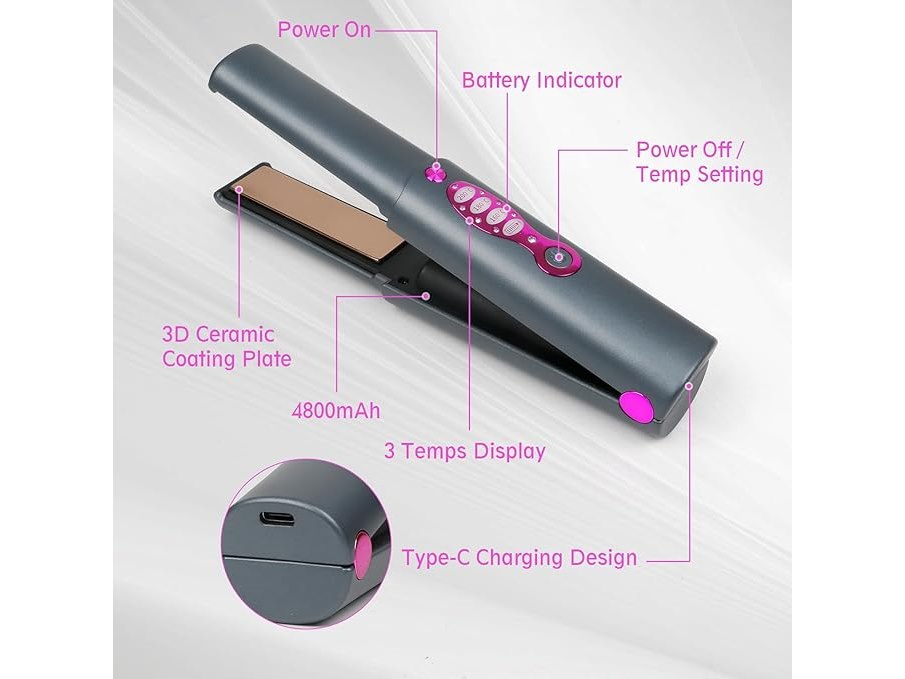 Ongebruikt, getest en werkend, ok, Draadloze stijltang, krultang, 2-in-1, mini draagbare draadloze reisstijltang, snel opwarmen, stijltang met 3 niveaus voor snel, glad, glanzend haar, Type-C, B0CHVY3DKH