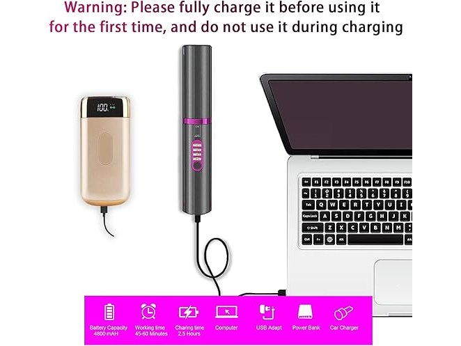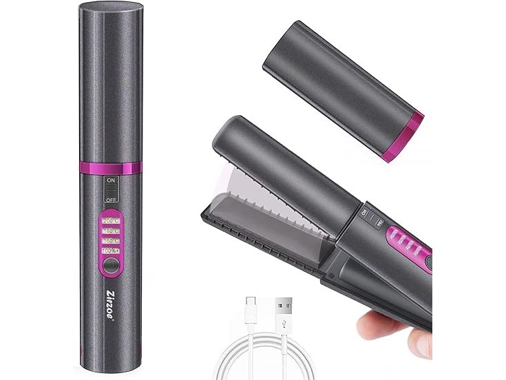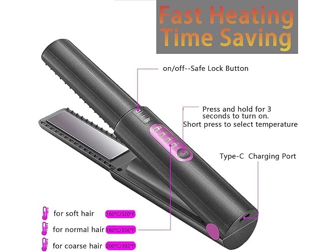 Ongebruikt, getest en werkend, ok, Draadloze Stijltang, krullen en stijltang, 2-in-1, draadloze mini-stijltang, keramiek, 20 cm, 3 temperatuurinstellingen 160/180/200 °C, met verbrandingsbeveiliging, oplaadbare stijltang met type C grijs, B0BPD6X2F1