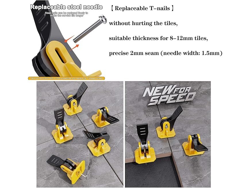 Ongeopend, in seal, Tegelnivelleringssysteem, wig,tegelleghulpset, tegelwiggen, tegelnivelleringssysteem, tegelgereedschap, nivelleringsset tegels, 50 nivelleringsregelaars + 50 reserve stalen naalden (1,5 mm), B0B7XX3G37