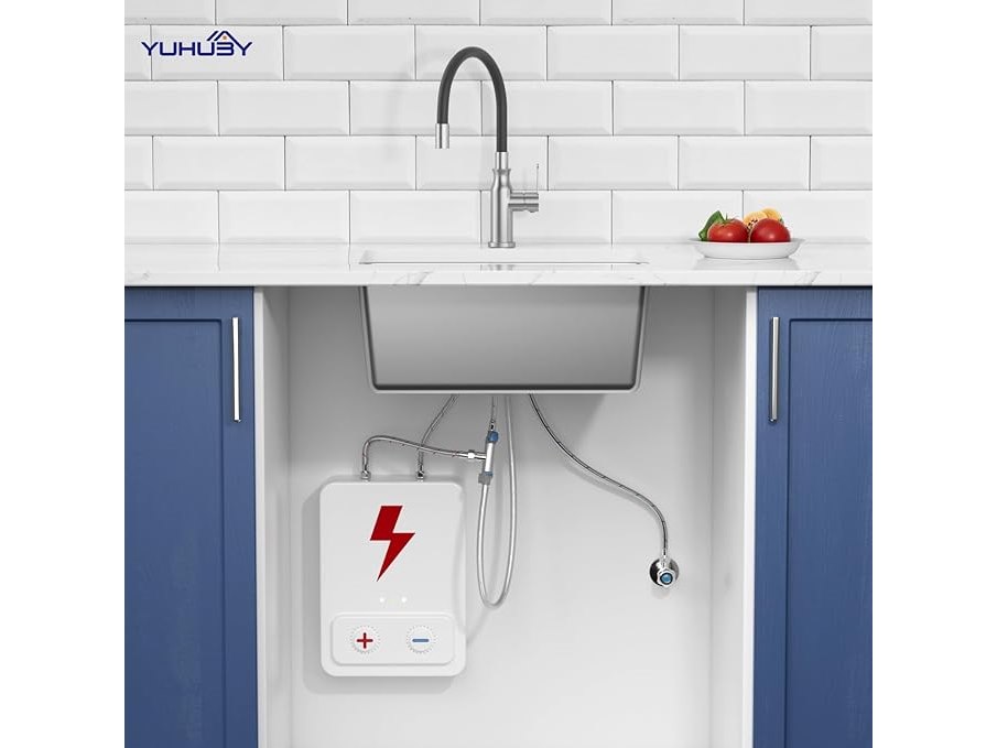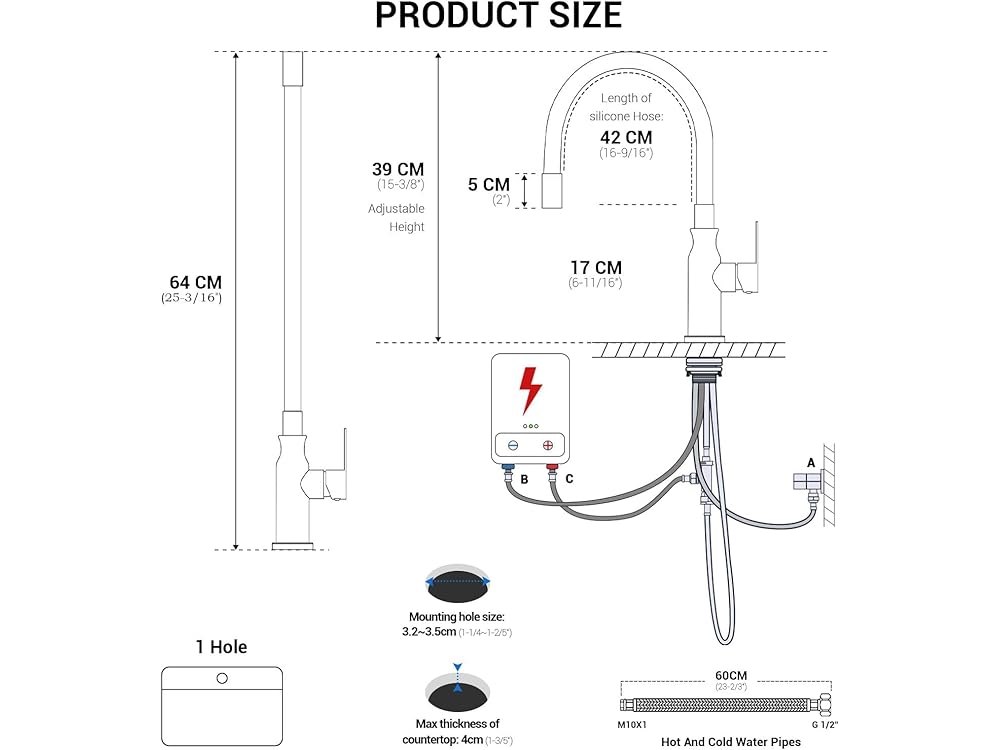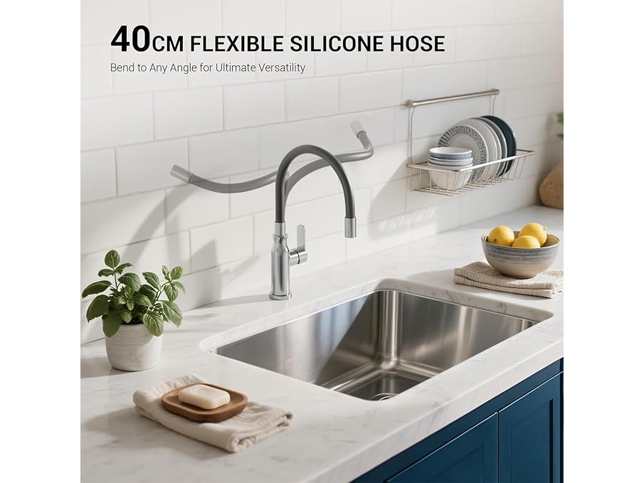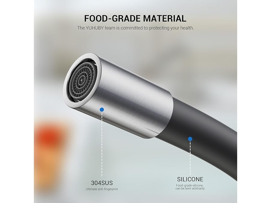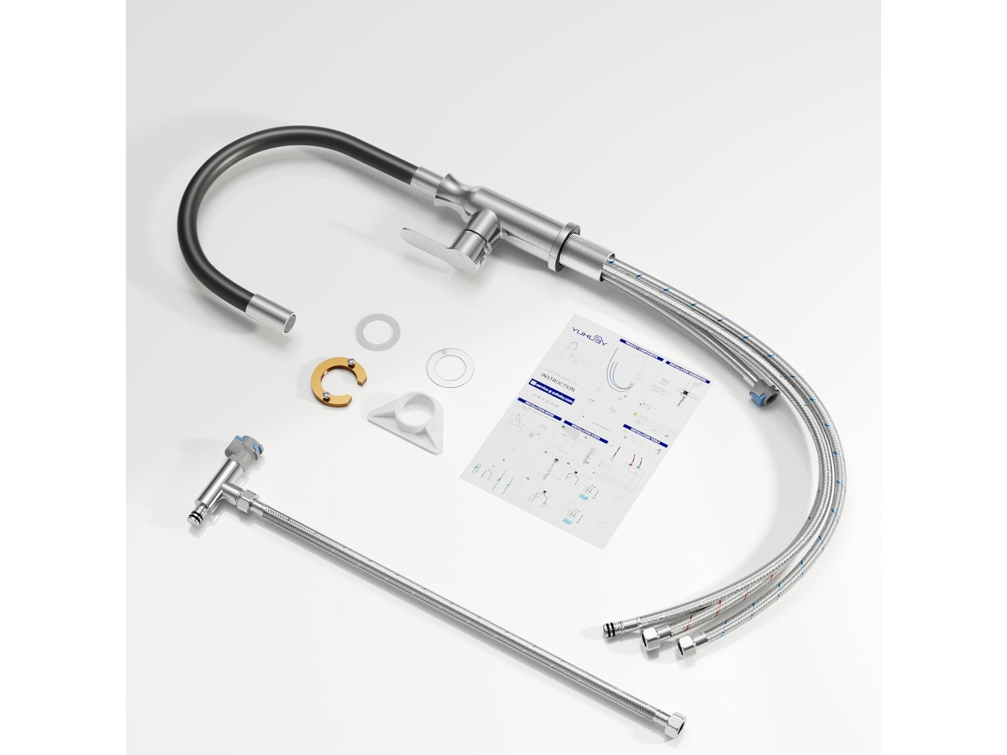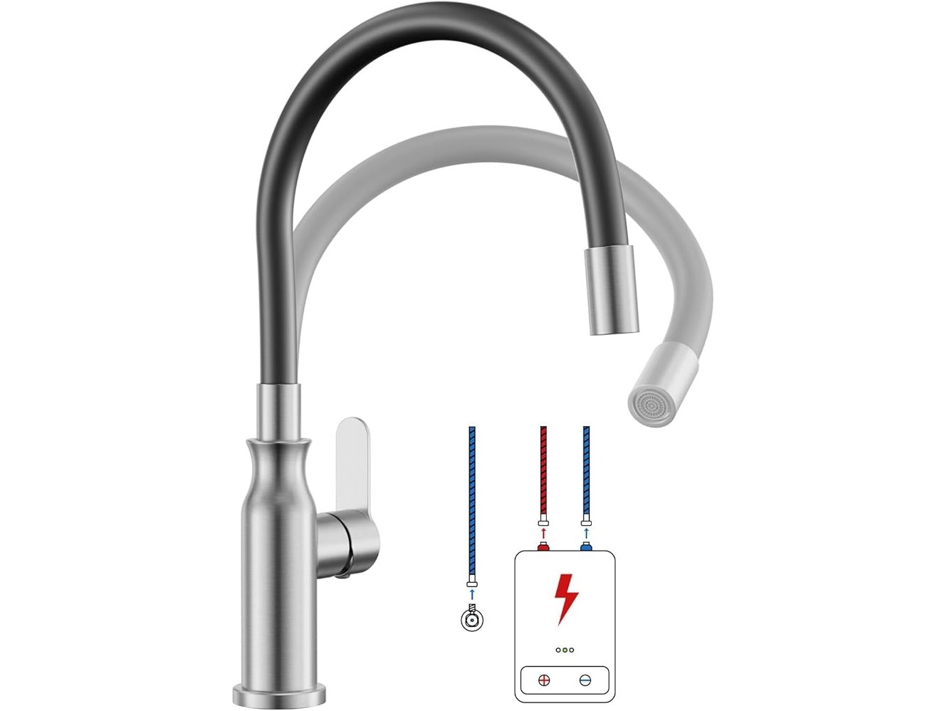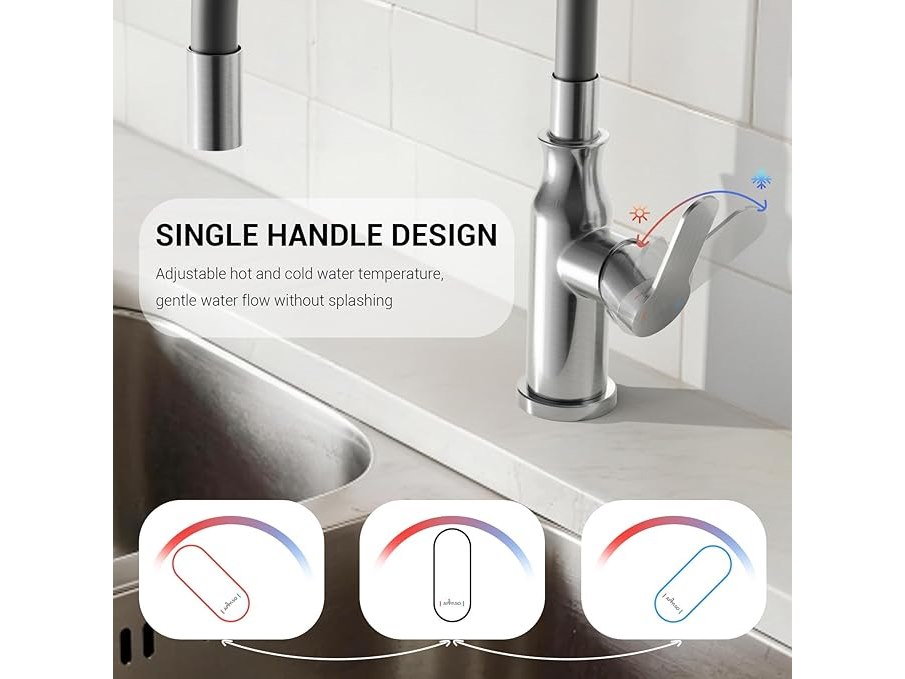 Minieme gebruikssporen, volledig, ok, Laagdruk keukenkraan, geborsteld roestvrij staal, 3 aansluitingen voor boiler, 360° draaibare uitloop met flexibele douche, hoge uitloop, wastafelarmatuur, B0F5B2K24T