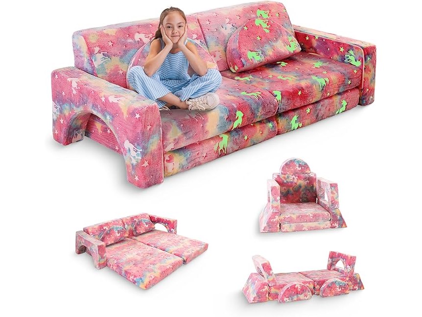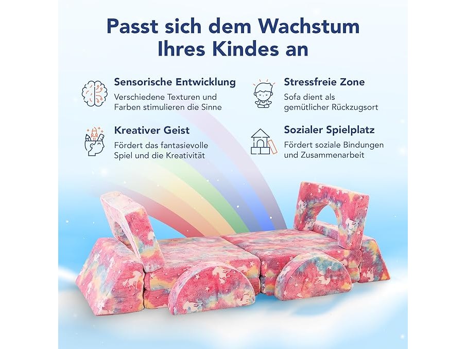Ongeopend, in seal, ok, MKS Speelbank, kinderbank van schuimrubber, bouwstenen, voor kinderen en knuffelhoek in de kinderkamer, bestaande uit 10 delen, voor de slaapkamer en de speelkamer (eenhoorn),B0DDDF9GMY